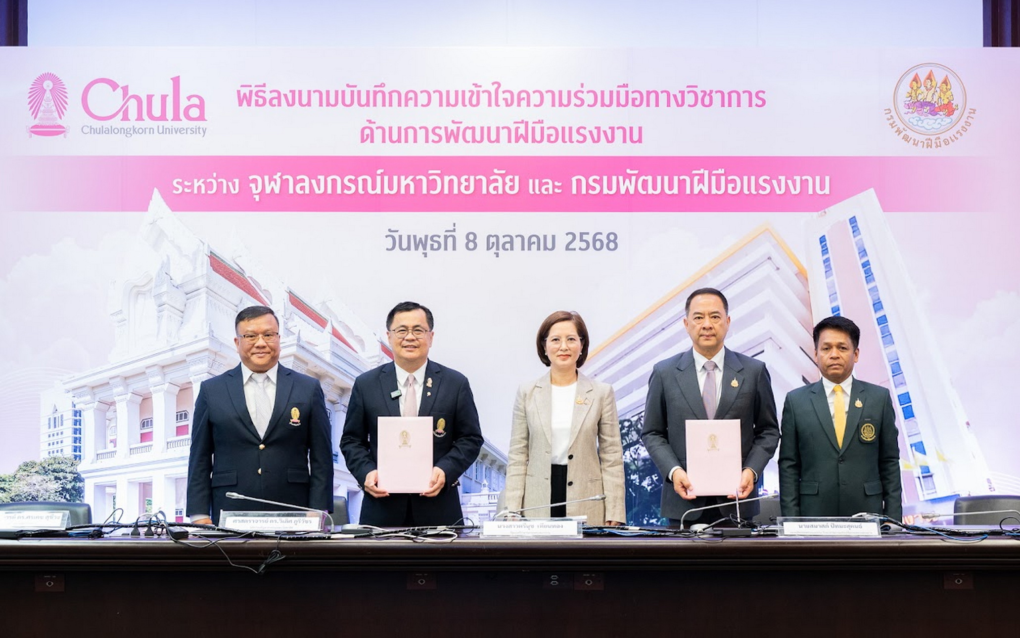 ร่วมมือทางวิชาการด้านการพัฒนาฝีมือแรงงาน โดยได้รับเกียรติจาก รศ.ดร.ศิริเดช สุชีวะ รองอธิการบดีจุฬาฯ และ นายภัทรวุธ เภอแสละ รองอธิบดีกรมพัฒนาฝีมือแรงงาน ร่วมลงนามเป็นสักขีพยาน