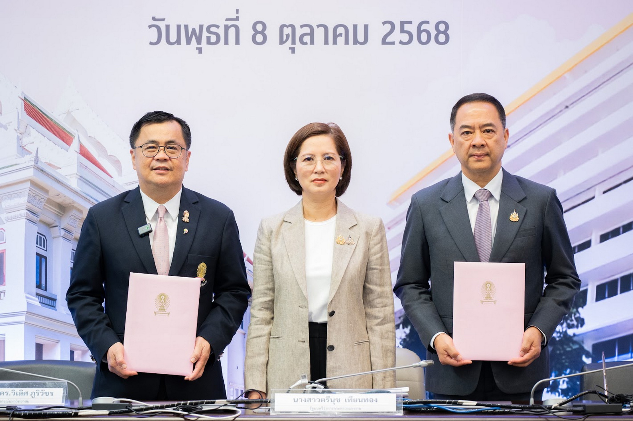 จุฬาลงกรณ์มหาวิทยาลัย ร่วมกับ กระทรวงแรงงาน โดยกรมพัฒนาฝีมือแรงงาน ลงนามบันทึกความเข้าใจความร่วมมือทางวิชาการด้านการพัฒนาฝีมือแรงงาน เพื่อยกระดับศักยภาพกำลังคนของประเทศให้สอดคล้องกับความต้องการของตลาดแรงงานในยุคเทคโนโลยีเปลี่ยนผ่าน โดยมี นางสาวตรีนุช เทียนทอง รัฐมนตรีว่าการกระทรวงแรงงาน เป็นประธานในพิธีลงนามและกล่าวแสดงความยินดี จากนั้น ศ.ดร.วิเลิศ ภูริวัชร อธิการบดีจุฬาลงกรณ์มหาวิทยาลัย และ นายสมาสภ์ ปัทมะสุคนธ์ รองปลัดกระทรวงแรงงาน รักษาราชการแทนปลัดกระทรวงแรงงาน ลงนามในบันทึกความเข้าใจความ