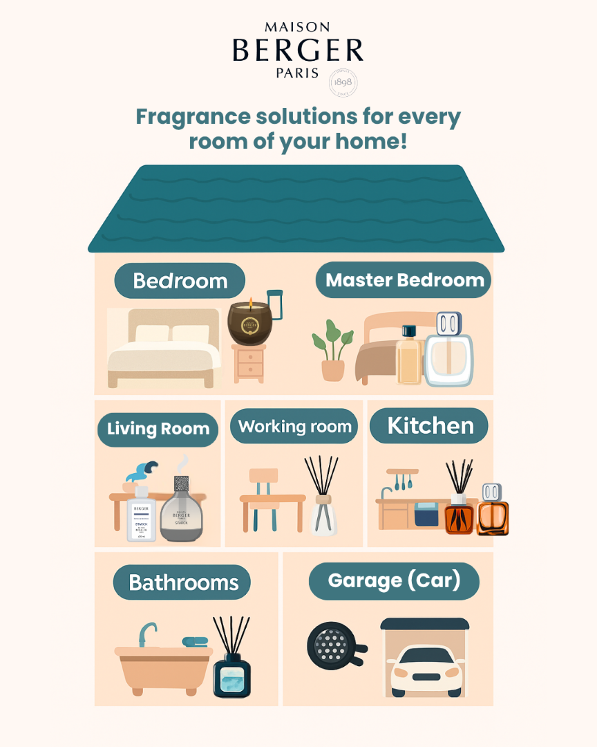 หอมให้ครบทั้งบ้านด้วย Maison Berger Paris เปลี่ยนทุกห้องให้เป็นสวรรค์แห่งกลิ่นหอม จากห้องนอนถึงภายในรถยนต์ ให้กลิ่นหอมช่วยตอบโจทย์ได้ทุกมุมบ้าน