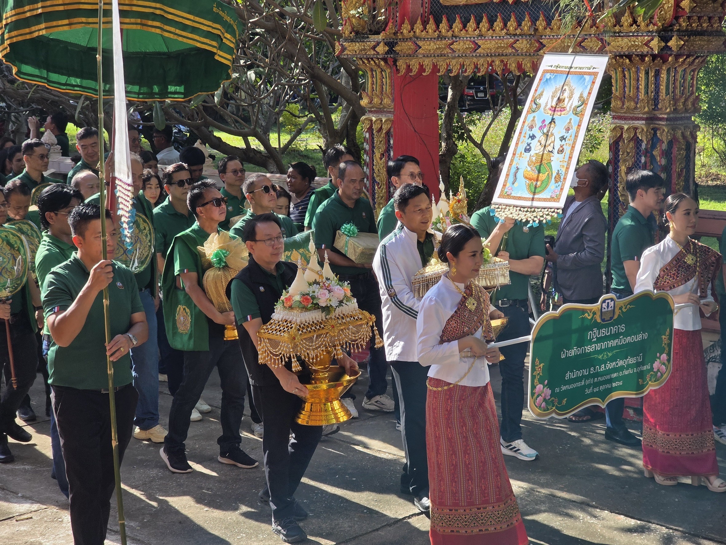 นายไพศาล หงษ์ทอง รองผู้จัดการ ธนาคารเพื่อการเกษตรและสหกรณ์การเกษตร (ธ.ก.ส.) พร้อมด้วย นายเกียรติศักดิ์ พระวร ผู้ช่วยผู้จัดการ ธ.ก.ส. และนายธีรยุทธ์ นิลพัฒน์ ผู้ช่วยผู้จัดการ ธ.ก.ส. ร่วมกับผู้บริหาร พนักงาน ลูกค้าธนาคาร และประชาชนผู้มีจิตศรัทธาในพื้นที่ร่วมถวายทอดกฐินสามัคคี ประจำปี 2568 ให้แก่พระสงฆ์ที่จำพรรษากาลถ้วนไตรมาส ณ วัดหนองกระดี่ ตำบลหนองยายดา อำเภอทัพทัน จังหวัดอุทัยธานี เพื่อร่วมเป็นส่วนหนึ่งในการสืบทอดประเพณีสำคัญทางพระพุทธศาสนา โดยรายได้จากการทอดกฐินครั้งนี้จะนำไปสมทบสร้างองค์หลวงพ่อเคลือบองค์ใหญ่พระประจำวัดหนองกระดี่ (เก่า) และอุปกรณ์ทางการแพทย์ให้กับโรงพยาบาลส่งเสริมสุขภาพตำบลหนองยายดา และจัดซื้ออุปกรณ์การศึกษาให้โรงเรียนบ้านหนองเมน ในวันเดียวกัน นายทองคำ เกตุโชติ รองผู้จัดการ ธ.ก.ส. พร้อมด้วยผู้บริหาร พนักงาน ลูกค้าธนาคาร และประชาชนผู้มีจิตศรัทธาในพื้นที่ร่วมถวายทอดกฐินสามัคคี ประจำปี 2568 ให้แก่พระสงฆ์ที่จำพรรษากาลถ้วนไตรมาส ณ วัดเขานาคา ตำบลกะลุวอ อำเภอเมือง จังหวัดนราธิวาส เพื่อร่วมเป็นส่วนหนึ่งในการสืบทอดประเพณีสำคัญทางพระพุทธศาสนาถวายปัจจัยแด่พระสงฆ์ที่จำพรรษากาล ซึ่งรายได้จากการทอดกฐินทั้งหมดร่วมสมทบทุนในการสร้างมณฑปพร้อมหอระฆัง เมื่อวันที่ 18 ตุลาคม 2568