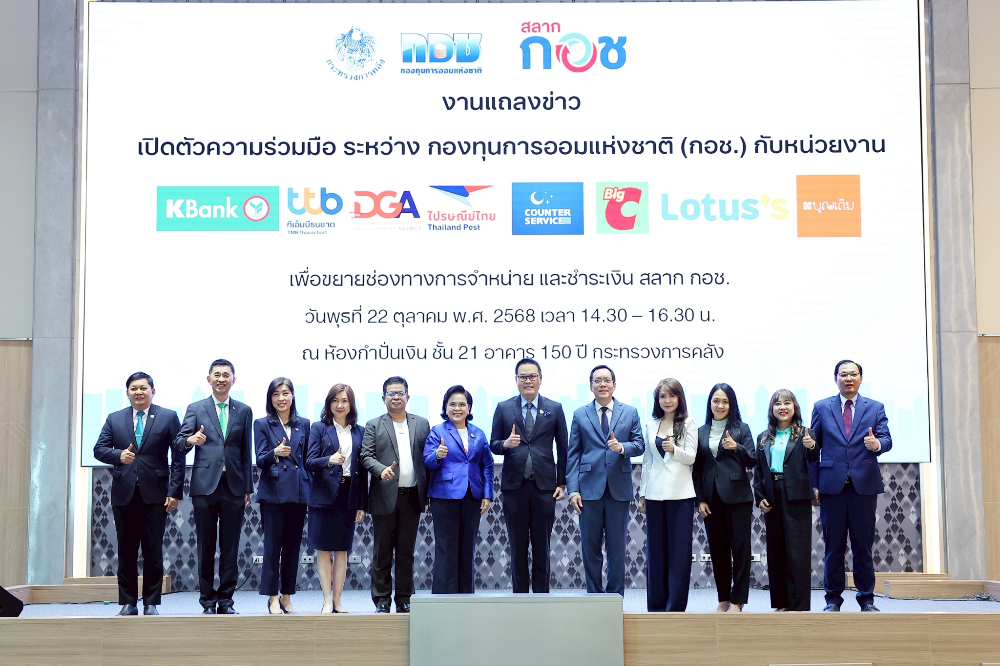 กองทุนการออมแห่งชาติ (กอช.) จัดงานแถลงข่าวเปิดตัวความร่วมมือระหว่าง กองทุนการออมแห่งชาติ (กอช.) กับหน่วยงาน เพื่อขยายช่องทางการจำหน่าย และชำระเงิน สลาก กอช. ยกระดับการออมของคนไทยเข้าสู่โลกดิจิทัล และจุดจำหน่าย ครอบคลุมทุกช่องทาง ให้เป็นเรื่องง่าย ปลอดภัย สนุก และลุ้นรางวัลใหญ่ 1 ล้านบาททุกสัปดาห์ ณ ห้องกำปั่นเงิน ชั้น 21 อาคาร 150 ปี กระทรวงการคลัง