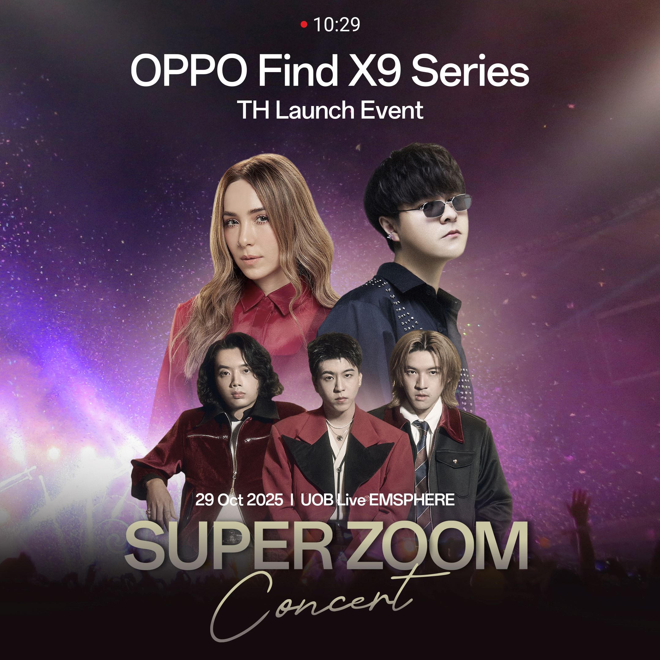 โดย OPPO เตรียมมอบความสุขให้แฟนๆ ได้ใกล้ชิดกับศิลปินสุดฮอตระดับแถวหน้าของไทย ไม่ว่าจะเป็น Palmy, The Toys และ Tilly Birds ที่จะมาร่วมสร้างสีสันและเติมเต็มค่ำคืนแห่งเสียงดนตรีให้เต็มไปด้วยพลังและความประทับใจ พร้อมเตรียมสัมผัสประสบการณ์ซูมที่ดีที่สุดด้วยกล้อง 200MP Hasselblad Telephoto คมชัดทุกการถ่ายภาพ ตอบโจทย์ทุกสายคอนเสิร์ตด้วยพลังซูมไกล 120x Super Zoom ตอบโจทย์สมาร์ตโฟนซูมดีทุกคอนเสิร์ต ติดตามรายละเอียดเพิ่มเติม และเตรียมซูมความสนุกไปพร้อมกันได้ในวันที่ 29 ตุลาคมนี้ ที่ UOB Live Hall