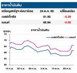 (-) ราคาน้ำมันดิบปรับตัวลดลง หลังตลาดเริ่มไม่มั่นใจในความเข้มงวดของรัฐบาลสหรัฐฯ ภายใต้ประธานาธิบดีโดนัลด์ ทรัมป์ ในการบังคับใช้มาตรการคว่ำบาตรต่อบริษัทน้ำมันรายใหญ่ของรัสเซีย ได้แก่ รอสเนฟต์ (Rosneft) และ ลูคออยล์ (Lukoil) ซึ่งเป็นบริษัทที่มีสัดส่วนการผลิตรวมกันกว่า 5% ของกำลังการผลิตน้ำมันทั่วโลก โดยรัสเซียเป็นผู้ผลิตน้ำมันดิบรายใหญ่อันดับสองของโลกในปี 2567 รองจากสหรัฐฯ ทั้งนี้ ความไม่ชัดเจนของท่าทีสหรัฐฯ ทำให้การส่งออกน้ำมันดิบจากรัสเซียยังไม่ถูกกระทบอย่างเป็นรูปธรรม
