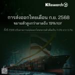 • ศูนย์วิจัยกสิกรไทยปรับประมาณการภาพรวมการส่งออกไทยขยายตัวเพิ่มขึ้นเป็น 11.0% จากเดิมที่คาดการณ์ไว้ 5.7% ในปี 2568 จากตัวเลขการส่งออกในเดือนก.ย. ที่ออกมาดีกว่าคาด และมุมมองการส่งออกในไตรมาส 4/2568 ที่ปรับดีขึ้น เนื่องจากการส่งออกอิเล็กทรอนิกส์ที่คาดว่าจะยังเร่งตัวต่อเนื่อง