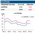 (-) ราคาน้ำมันดิบเวสต์เท็กซัสและเบรนท์ปรับลดลง หลังกลุ่มโอเปกมีแนวโน้มที่จะเพิ่มกำลังการผลิตน้ำมันดิบในเดือน ธ.ค. อีก 137,000 บาร์เรลต่อวัน จากปัจจัยการคาดการณ์ว่าการค้าสหรัฐฯ และจีนมีแนวโน้มที่จะสามารถบรรลุข้อตกลง รวมถึงมาตรการคว่ำบาตรรัสเซียของสหรัฐฯ