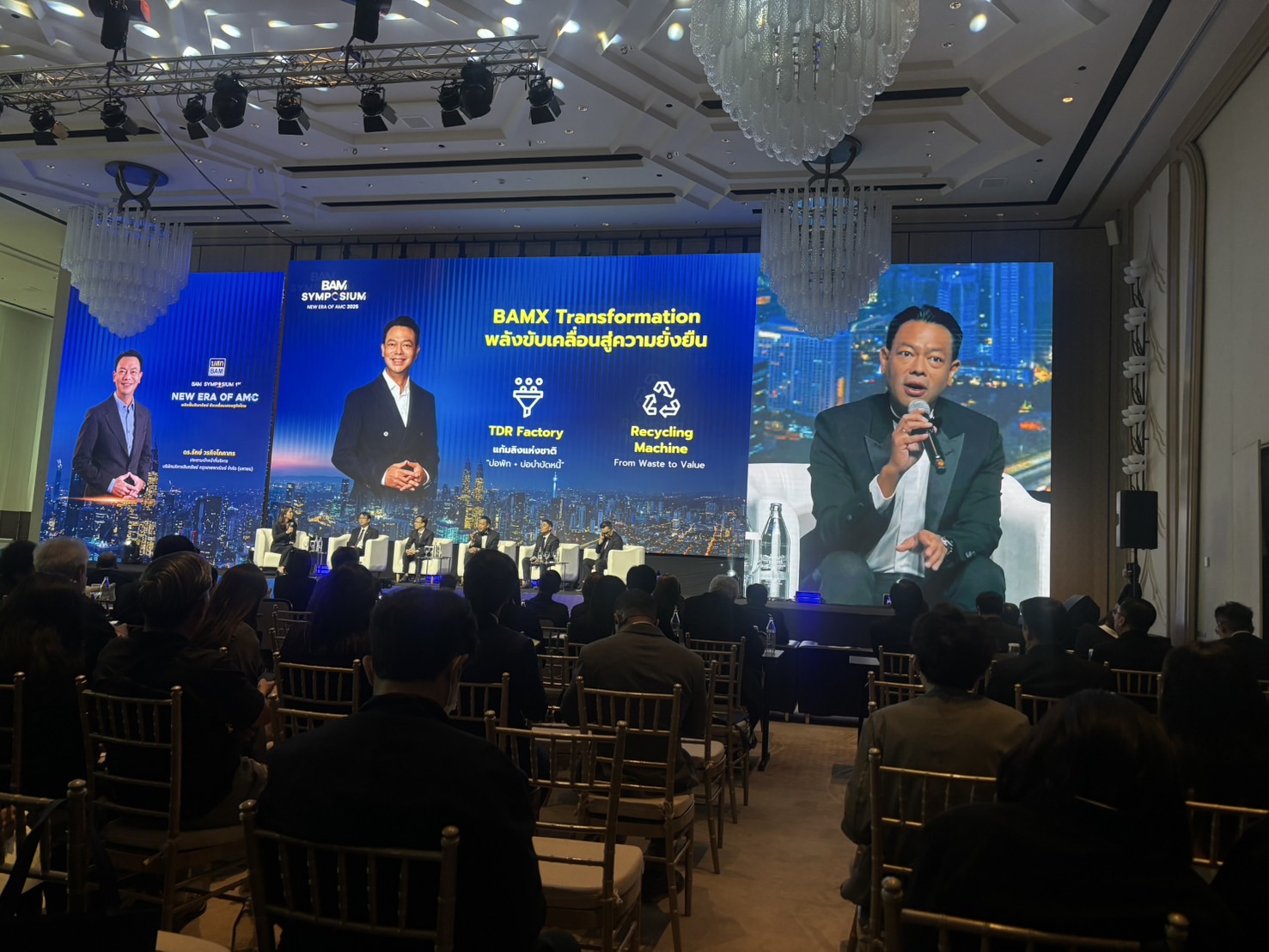 บรรยากาศภายในงานเต็มไปด้วยความคึกคักจากการรวมตัวของผู้บริหารระดับสูงจากบริษัท AMC ชั้นนำของไทย 5 แห่ง ได้แก่ BAM, SAM, JMT, CHAYO และ KCC ที่มาร่วมเสวนาในเวทีเดียวกันเป็นครั้งแรก พร้อมด้วยผู้บริหารจาก บริษัท ข้อมูลเครดิตแห่งชาติ จำกัด (NCB) ผู้เชี่ยวชาญด้านอสังหาริมทรัพย์ และกูรูการลงทุนชื่อดัง โดยมีนักธุรกิจ นักลงทุน และประชาชนทั่วไปให้ความสนใจเข้าร่วมฟังสัมมนาอย่างคับคั่ง งาน BAM SYMPOSIUM : New Era of AMC 2025 จึงนับเป็นจุดเริ่มต้นของ “ยุคใหม่แห่งธุรกิจบริหารสินทรัพย์ไทย” ที่ไม่เพียงสร้างองค์ความรู้ แต่ยังเปิดโอกาสและสร้างแรงบันดาลใจให้ผู้คนมองเห็นศักยภาพใหม่ของการลงทุน การพัฒนาเศรษฐกิจ และการสร้างคุณค่าจากทรัพย์ในมุมมองที่แตกต่าง