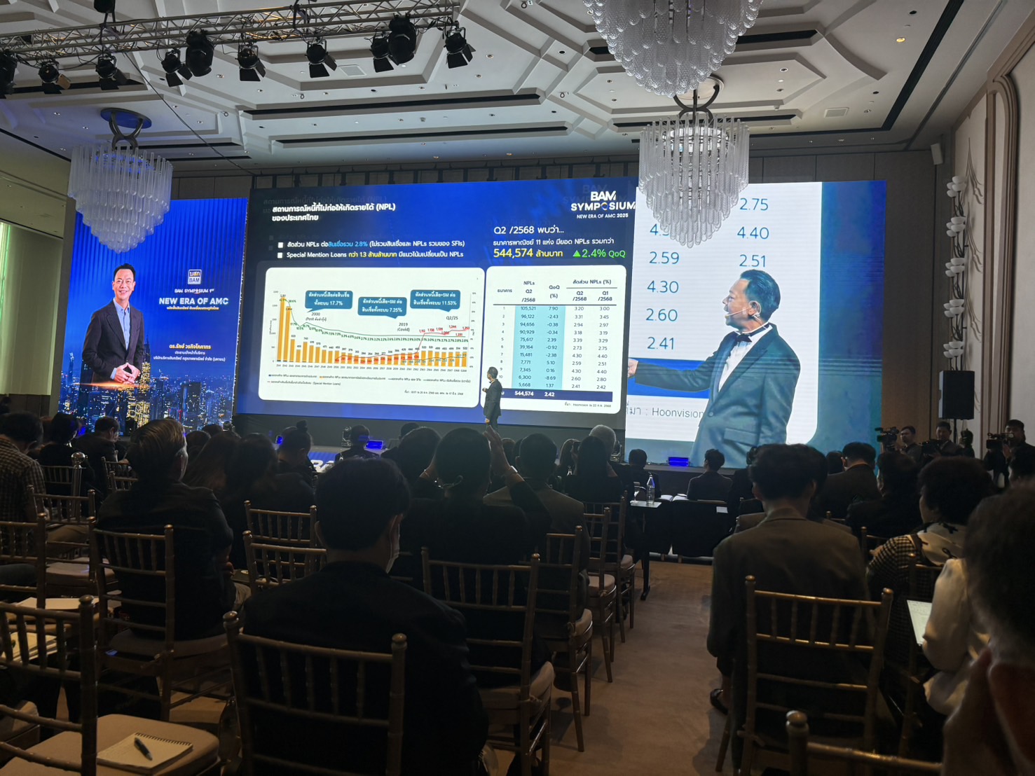 สำหรับงานสัมมนา BAM SYMPOSIUM ครั้งที่ 1 จัดขึ้นภายใต้แนวคิด New Era of AMC 2025 : พลิกฟื้นสินทรัพย์ ขับเคลื่อนเศรษฐกิจไทย เพื่อแลกเปลี่ยนมุมมองเชิงลึกเกี่ยวกับบทบาทของบริษัทบริหารสินทรัพย์ (AMC) ในยุคใหม่ ครอบคลุมในหลายมิติ อาทิ AMC กับบทบาทการพลิกฟื้นสินทรัพย์ขับเคลื่อนเศรษฐกิจไทย, ผนึกกำลังขุนพล AMC แก้วิกฤตหนี้ท่วมระบบ, ไขรหัสลับ NCB จากข้อมูลสู่โอกาส, ลงทุนอสังหาไปต่อหรือพอก่อน?, ไขกุญแจลับเปิดขุมทรัพย์ NPA และ เจาะลึกการดูฮวงจุ้ยและแก้ฮวงจุ้ยทรัพย์มือสอง