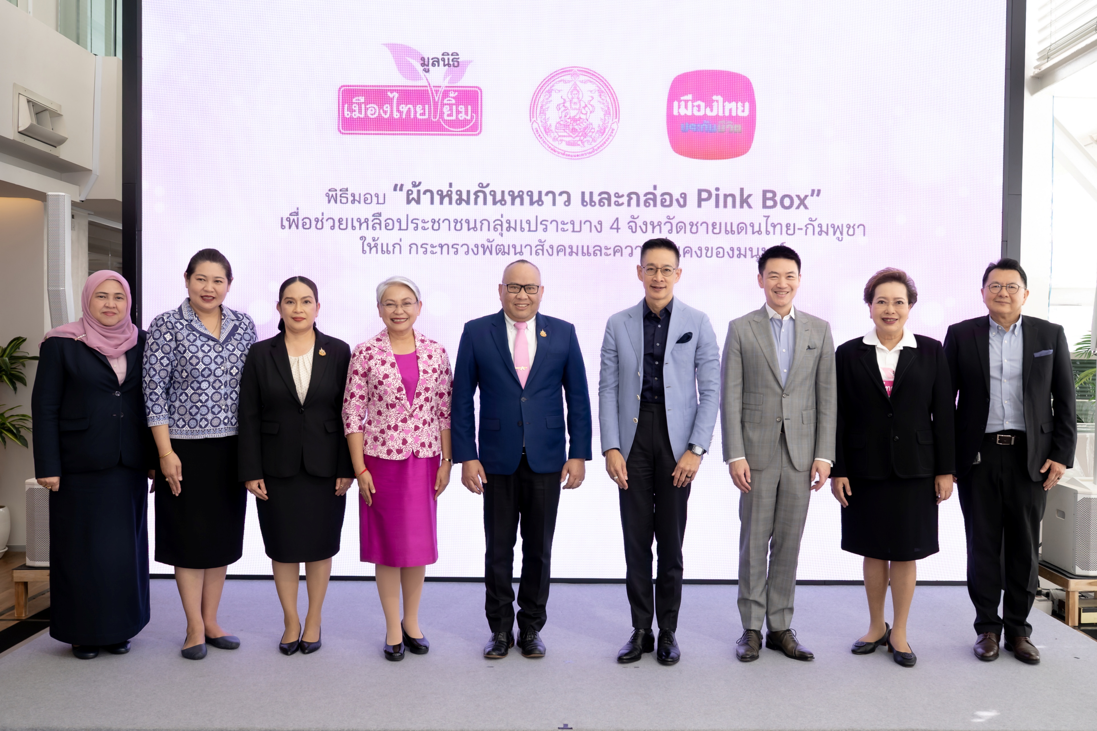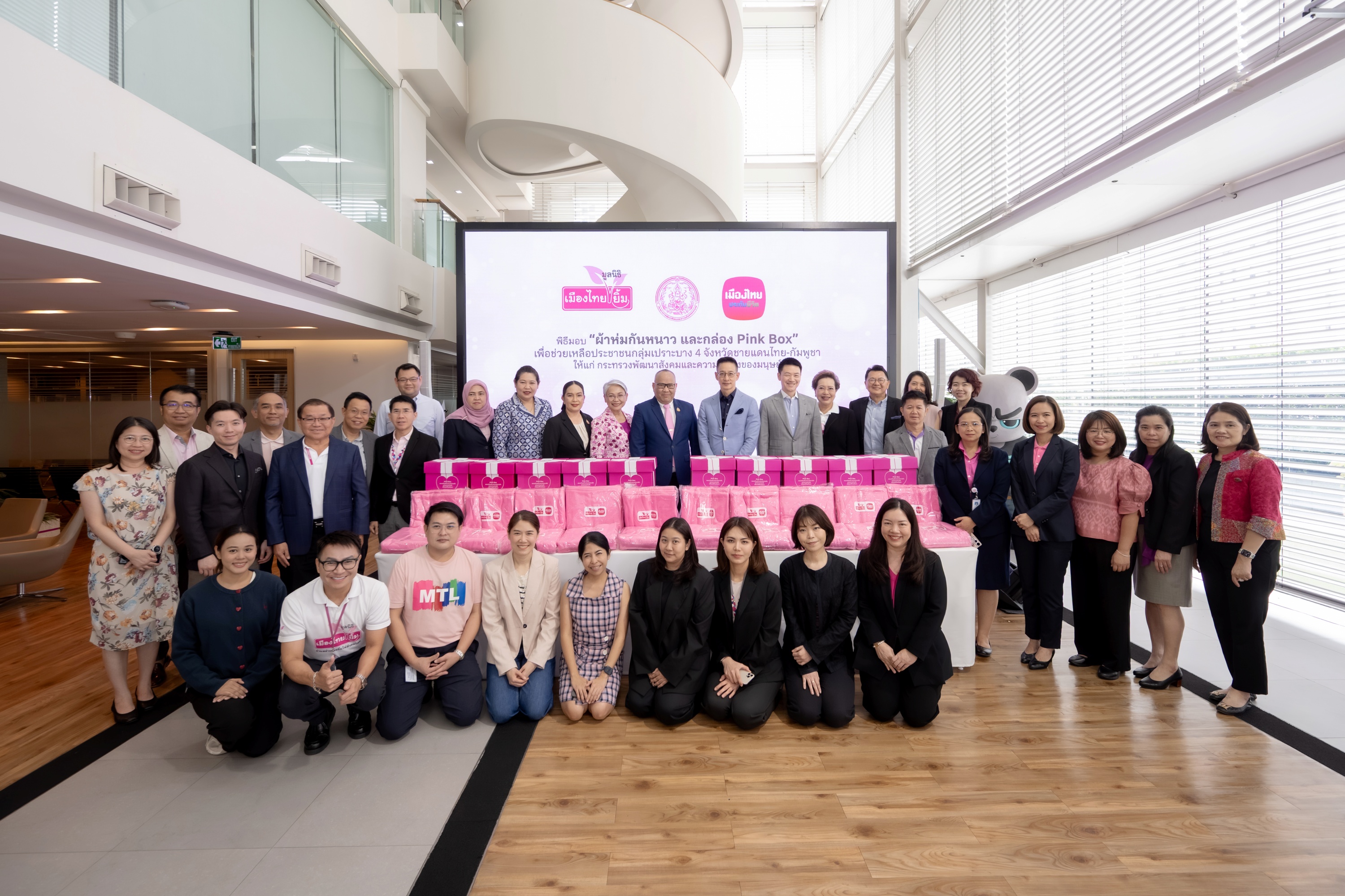 เมืองไทยประกันชีวิตและมูลนิธิเมืองไทยยิ้ม ร่วมเดินหน้าสานต่อภารกิจ “ส่งต่อความอบอุ่นสู่หัวใจคนไทย” มอบผ้าห่มกันหนาวและกล่อง “Pink Box” เพื่อช่วยเหลือประชาชนกลุ่มเปราะบางให้แก่กระทรวงการพัฒนาสังคมและความมั่นคงของมนุษย์ ภายใต้โครงการ “พม.ใกล้คุณ” ร่วมบรรเทาทุกข์และเตรียมพร้อมรับมือภัยหนาวในช่วงปลายปี สะท้อนเจตนารมณ์ขององค์กรในการส่งต่อความห่วงใยและสร้างรอยยิ้มให้กับสังคมไทยอย่างยั่งยืน