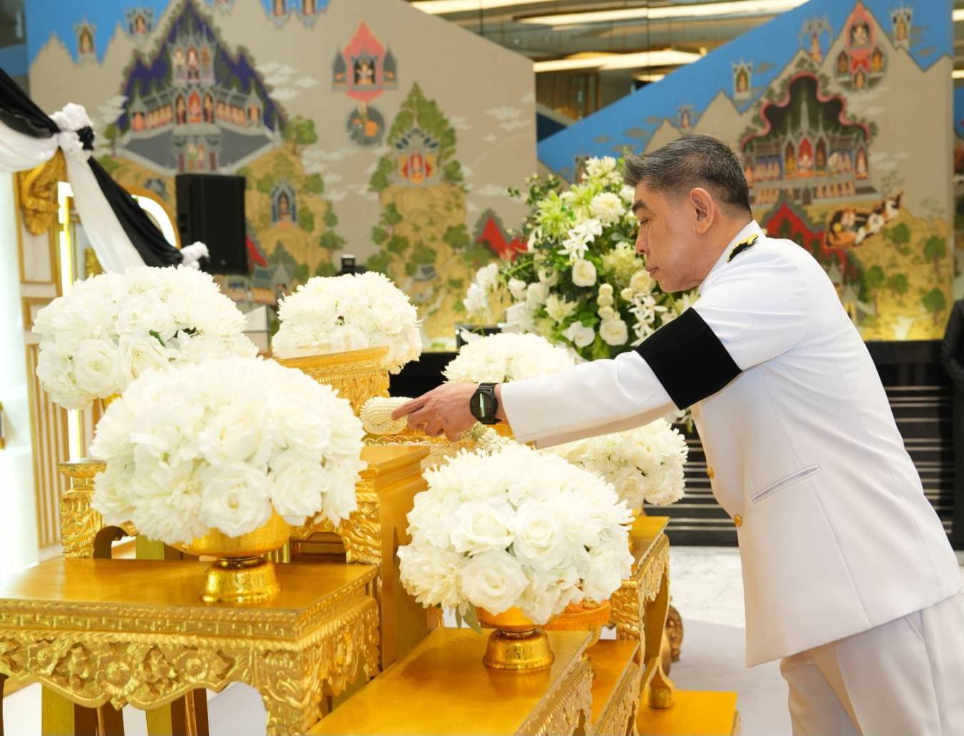 นายกมลภพ วีระพละ กรรมการผู้จัดการ ธนาคารอาคารสงเคราะห์ (ธอส.) นำคณะผู้บริหาร และพนักงานธนาคาร ร่วมพิธีแสดงความอาลัยถวายแด่สมเด็จพระนางเจ้าสิริกิติ์ พระบรมราชินีนาถ พระบรมราชชนนีพันปีหลวง พร้อมยืนสงบนิ่งและลงนามถวายความอาลัย เพื่อแสดงความจงรักภักดีและน้อมสำนึกในพระมหากรุณาธิคุณเป็นล้นพ้นอันหาที่สุดมิได้ ณ Banking Hall ธนาคารอาคารสงเคราะห์ สำนักงานใหญ่ เมื่อวันที่ 29 ตุลาคม 2568