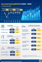 สำหรับในปี 2569 กระทรวงการคลังคาดว่าเศรษฐกิจไทยจะขยายตัวชะลอลงที่ร้อยละ 2.0 ต่อปี (ช่วงคาดการณ์ที่ร้อยละ 1.5 ถึง 2.5) เนื่องจากมีการเร่งส่งออกในปี 2568 เพื่อหลีกเลี่ยงผลกระทบจากมาตรการภาษีการค้าของสหรัฐเป็นสำคัญ โดยคาดว่ามูลค่าการส่งออกสินค้าจะหดตัวที่ร้อยละ -1.5 (ช่วงคาดการณ์ที่ร้อยละ -2.0 ถึง -1.0) อย่างไรก็ดียังมีปัจจัยสนับสนุนมาจาก 1) ภาคการท่องเที่ยวที่คาดว่าจะฟื้นตัวขึ้น โดยคาดว่าจะมีนักท่องเที่ยวชาวต่างประเทศเดินทางเข้ามาในประเทศไทยจำนวน 35.5 ล้านคน เพิ่มขึ้นจากปีก่อนหน้า จากความเชื่อมั่นของนักท่องเที่ยวที่ฟื้นตัว ประกอบกับจะมีการจัดงานสำคัญต่าง ๆ เช่น งานมหกรรมพืชสวนโลกปี 2569 และการประชุมประจำปีสภาผู้ว่าการกองทุนการเงินระหว่างประเทศ (IMF) และธนาคารโลก (World Bank Group - WBG) ประจำปี 2) การบริโภคภาคเอกชนที่ขยายตัวได้ดี โดยคาดว่าจะขยายตัวได้ที่ร้อยละ 2.4 ต่อปี (ช่วงคาดการณ์ที่ร้อยละ 1.9 ถึง 2.9) และ 3) การลงทุนภาครัฐขยายตัวที่ร้อยละ 3.0 (ช่วงคาดการณ์ที่ร้อยละ 2.5 ถึง 3.5) จากการเร่งรัดการเบิกจ่ายและลงทุนของภาครัฐ