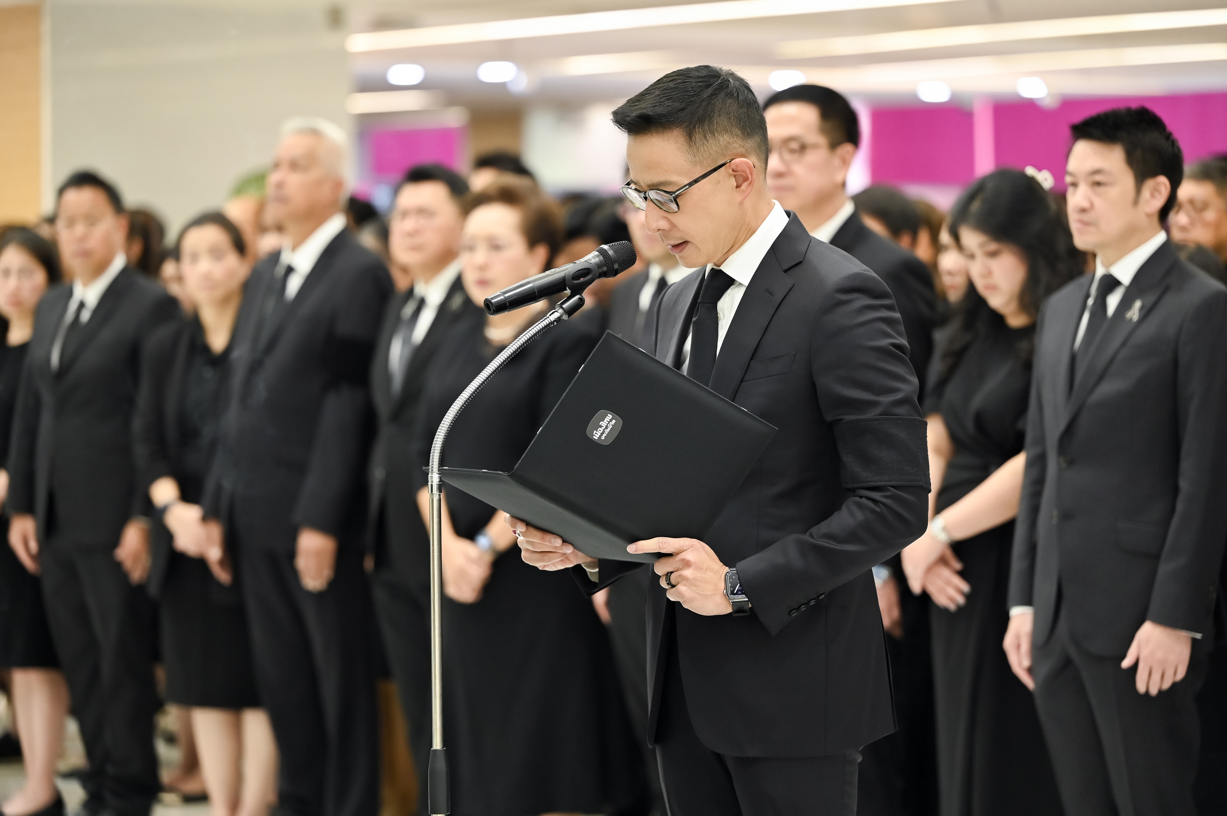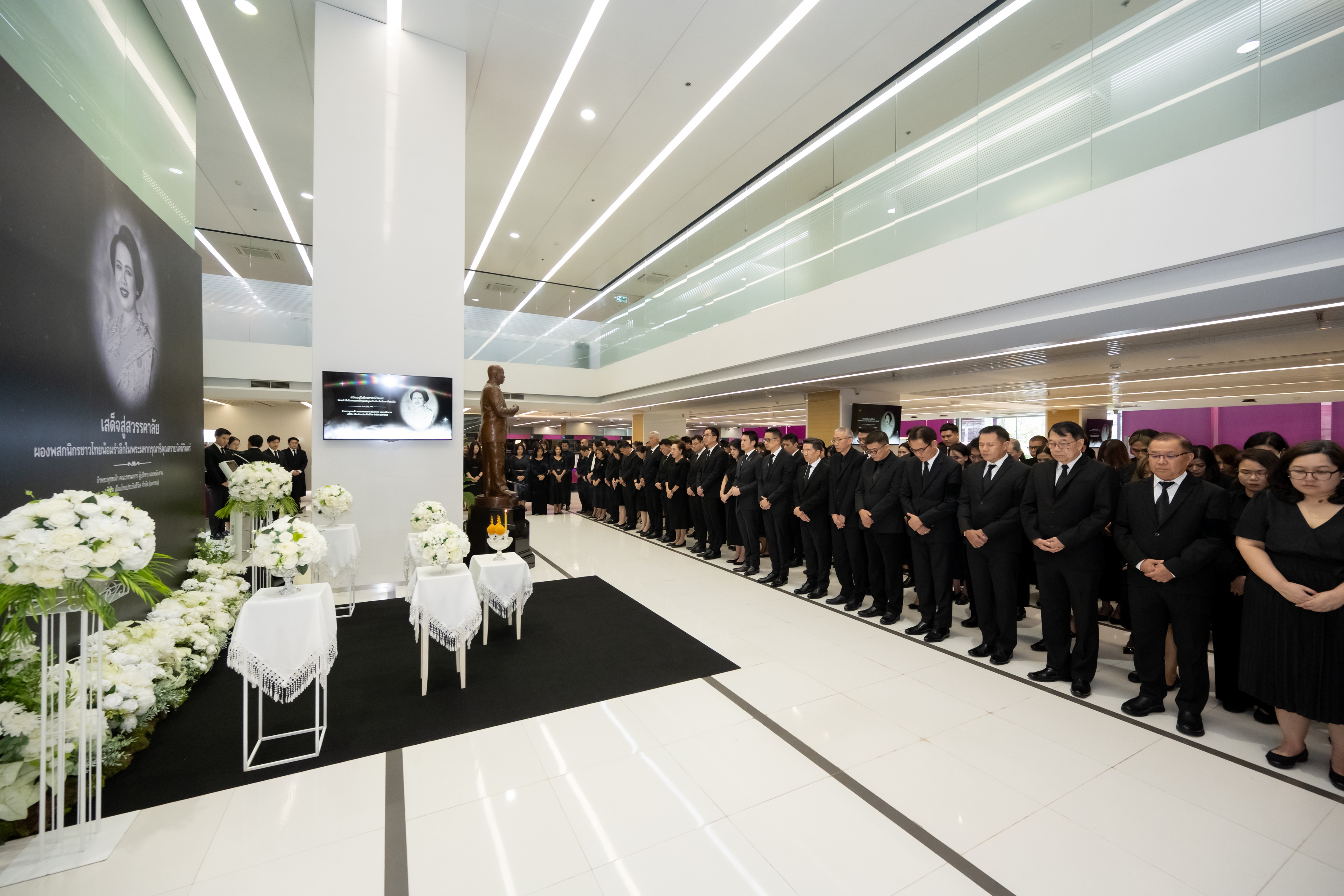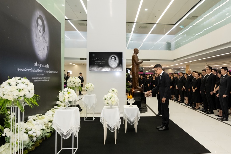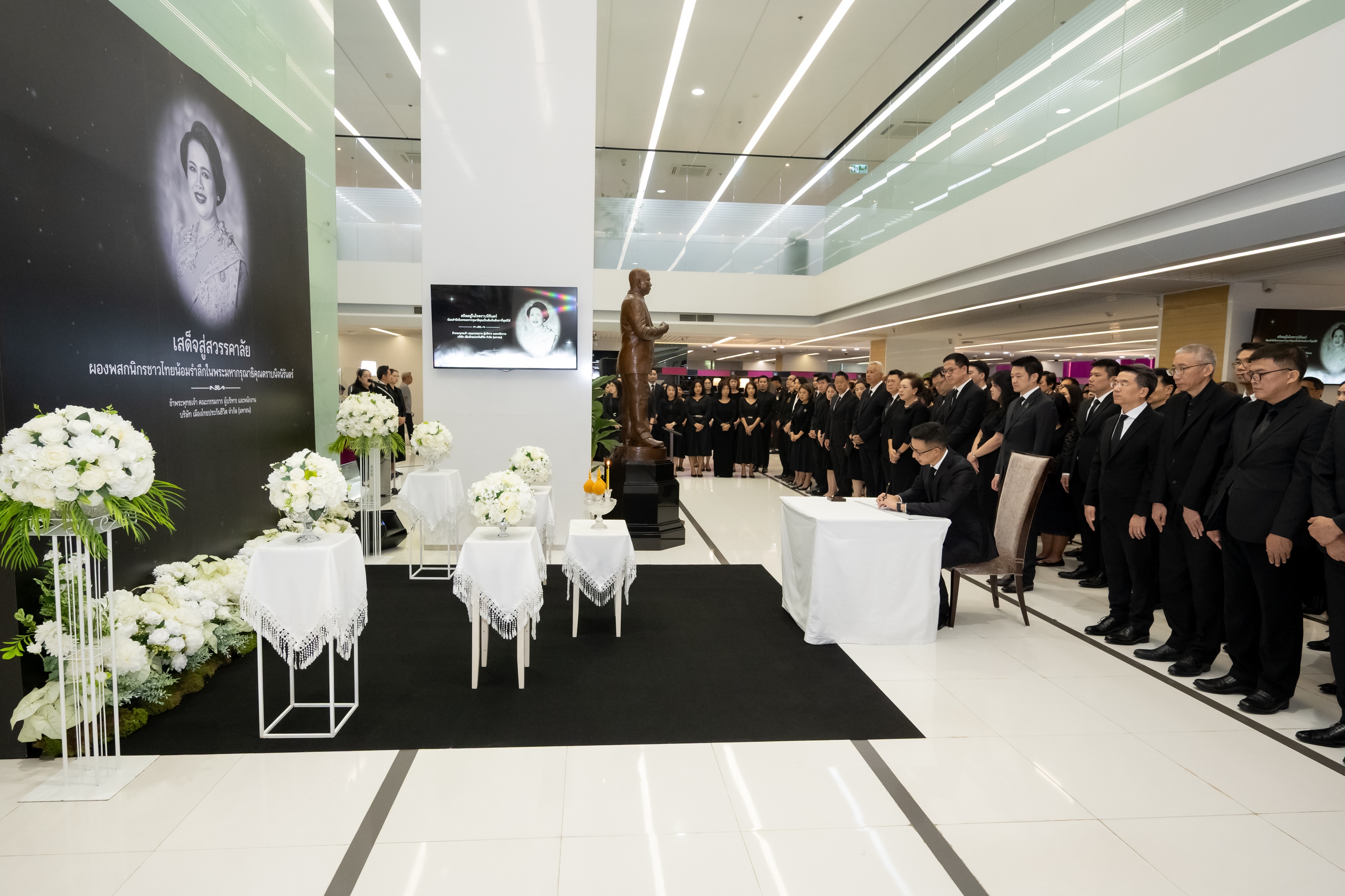 ในโอกาสนี้ นายสาระ ล่ำซำ ประธานเจ้าหน้าที่บริหาร ได้กล่าวถวายความอาลัย พร้อมกันนี้ คณะผู้บริหารและพนักงาน ได้พร้อมใจกันยืนสงบนิ่ง และลงนามในสมุดถวายความอาลัย เพื่อแสดงความจงรักภักดี และน้อมรำลึกถึงพระมหากรุณาธิคุณที่ทรงมีต่อพสกนิกรชาวไทย ตลอดระยะเวลาที่ทรงปฏิบัติ พระราชกรณียกิจน้อยใหญ่นานัปการ ตามที่ทรงตั้งพระราชปณิธานอย่างแน่วแน่ ในการบำเพ็ญ พระราชกรณียกิจมาตลอดพระชนม์ชีพ เพื่อบำบัดทุกข์บำรุงสุข แก่พสกนิกรชาวไทยในทุกหนแห่ง อีกทั้งยังทรงส่งเสริมงานด้านศิลปวัฒนธรรม หัตถศิลป์ไทย ตลอดจนการอนุรักษ์ธรรมชาติและสิ่งแวดล้อม รวมทั้งการพัฒนาคุณภาพชีวิตของประชาชนในถิ่นทุรกันดาร ซึ่งสะท้อนถึงพระเมตตาของสมเด็จพระนางเจ้าสิริกิติ์ พระบรมราชินีนาถ พระบรมราชชนนีพันปีหลวง สมดังพระราชสมัญญา “พระแม่ของแผ่นดิน”