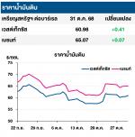 (+) ราคาน้ำมันดิบเวสต์เท็กซัส และเบรนท์ปรับเพิ่มขึ้น หลังมีรายงานว่าสหรัฐฯ จะโจมตีเวเนซุเอลาด้วยขีปนาวุธทางอากาศภายในไม่กี่ชั่วโมง อย่างไรก็ดี ประธานาธิปดีสหรัฐฯ โดนัลด์ ทรัมป์ ได้ออกมาปฏิเสธข่าวดังกล่าว ทั้งนี้สหรัฐฯ ได้เตรียมการเครื่องบินรบบริเวณชายฝั่งเวเนซุเอลา สำหรับโจมตีเรือบรรทุกยาเสพติดตั้งแต่สัปดาห์ก่อนหน้า
