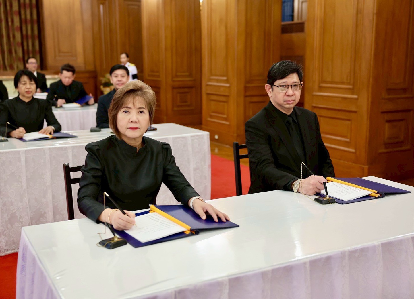 นายธีรัชย์ อัตนวานิช ประธานกรรมการธนาคารออมสิน และนางลภาวรรณ จันทร์กระจ่าง รองผู้อำนวยการธนาคารออมสิน รักษาการแทนผู้อำนวยการธนาคารออมสิน พร้อมด้วยคณะผู้บริหาร ถวายพวงมาลัย พร้อมลงนามถวายความอาลัย แด่สมเด็จพระนางเจ้าสิริกิติ์ พระบรมราชินีนาถ พระบรมราชชนนีพันปีหลวง เพื่อแสดงความจงรักภักดีและสำนึกในพระมหากรุณาธิคุณอันหาที่สุดมิได้ ที่ทรงปฏิบัติพระราชกรณียกิจนานัปการ เพื่อประโยชน์สุขของพสกนิกรชาวไทย ณ ศาลาสหทัยสมาคม ในพระบรมมหาราชวัง เมื่อวันที่ 4 พฤศจิกายน 2568