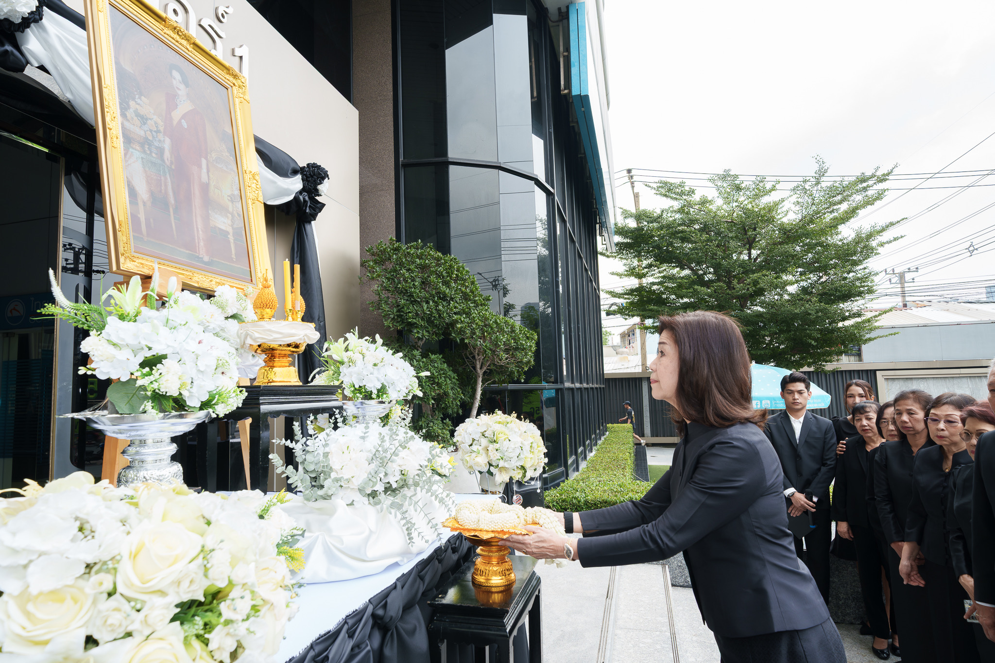 บมจ.ไทยสมุทรประกันชีวิต รักคือพลังของชีวิต โดยคุณนุสรา (อัสสกุล) บัญญัติปิยพจน์ ประธานเจ้าหน้าที่บริหารและกรรมการผู้จัดการ (CEO) พร้อมด้วยคณะกรรมการ ผู้บริหาร และพนักงาน จัดพิธีน้อมถวายความอาลัยเบื้องหน้าพระฉายาลักษณ์ สมเด็จพระนางเจ้าสิริกิติ์ พระบรมราชินีนาถ พระบรมราชชนนีพันปีหลวง ณ อาคารโอเชี่ยนทาวเวอร์ 1 ในวันจันทร์ที่ 4 พฤศจิกายน 2568