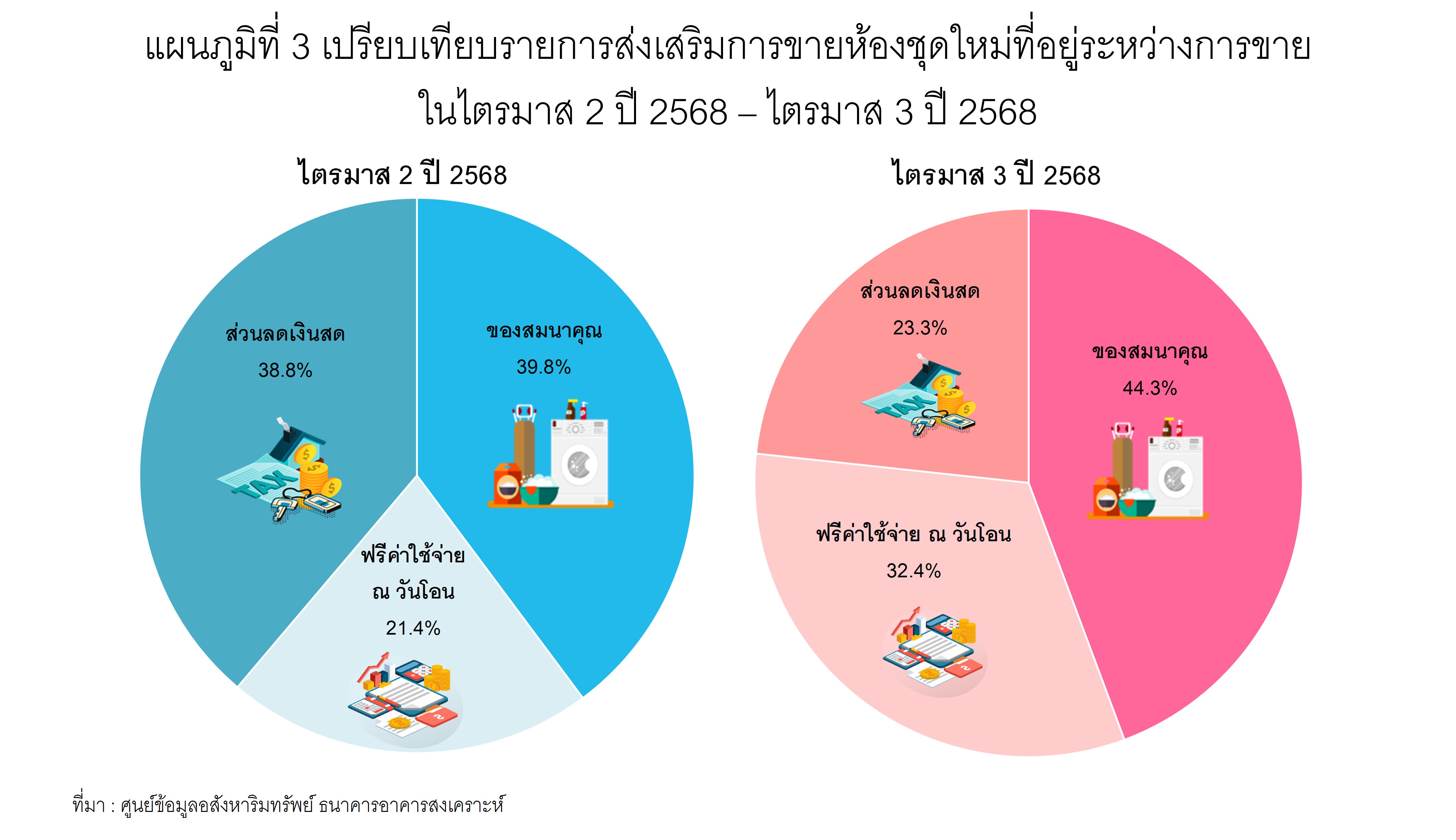 สำหรับรายการส่งเสริมการขายห้องชุดใหม่ที่อยู่ระหว่างการขายในไตรมาสนี้พบว่า ส่วนใหญ่เป็นของสมนาคุณ ร้อยละ 44.3 เพิ่มขึ้นจากไตรมาสก่อนที่มีสัดส่วนร้อยละ 39.8 สำหรับรูปแบบการให้ส่วนลดฟรีค่าใช้จ่ายในวันโอนกรรมสิทธิ์ มีสัดส่วนร้อยละ 32.4 เพิ่มขึ้นจากไตรมาสก่อนซึ่งมีสัดส่วนร้อยละ 21.4 และการส่งเสริมการขายโดยการให้ส่วนลดเงินสด มีสัดส่วนร้อยละ 23.3 ลดลงจากไตรมาสก่อนซึ่งมีสัดส่วนร้อยละ 38.8