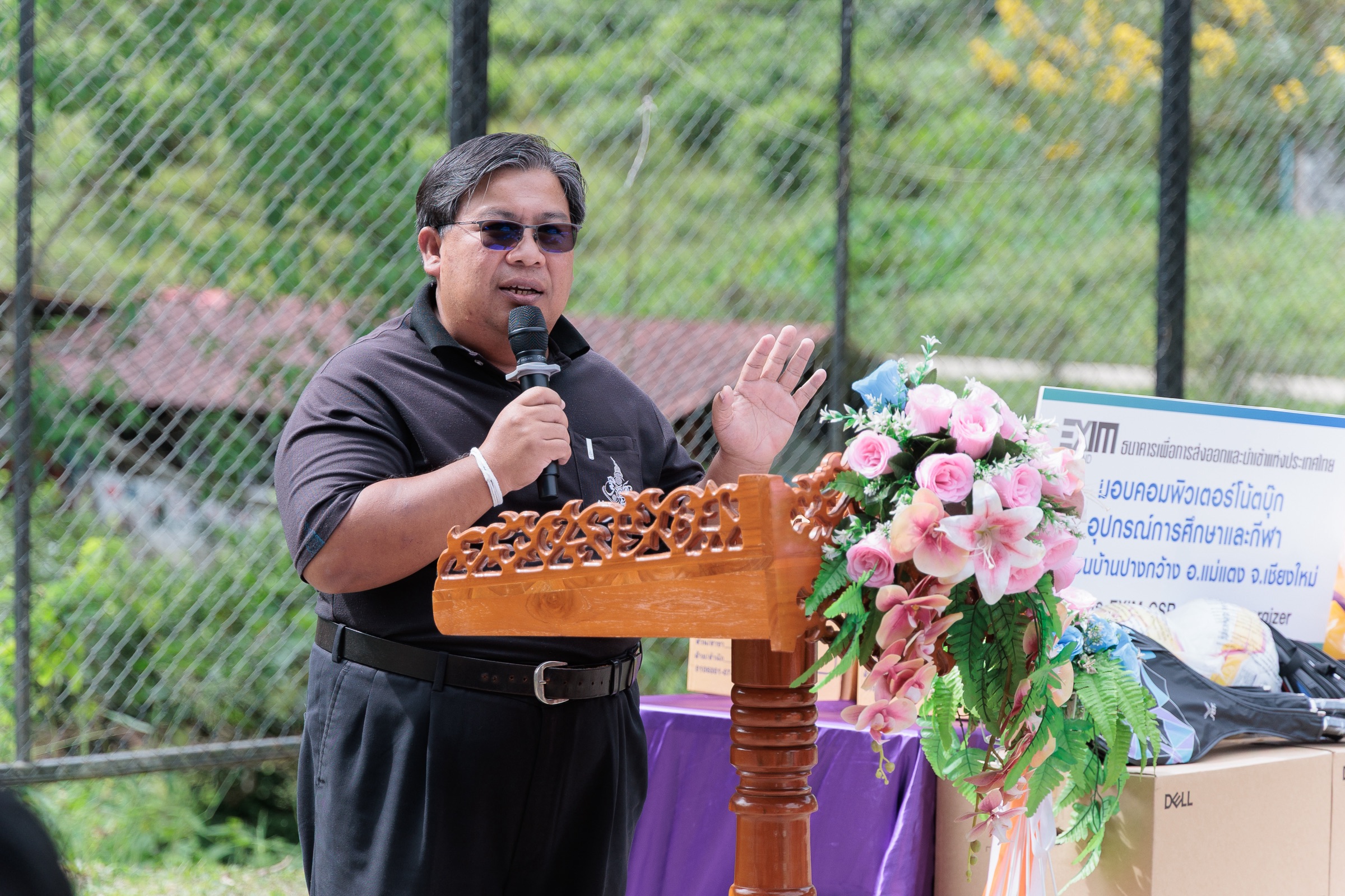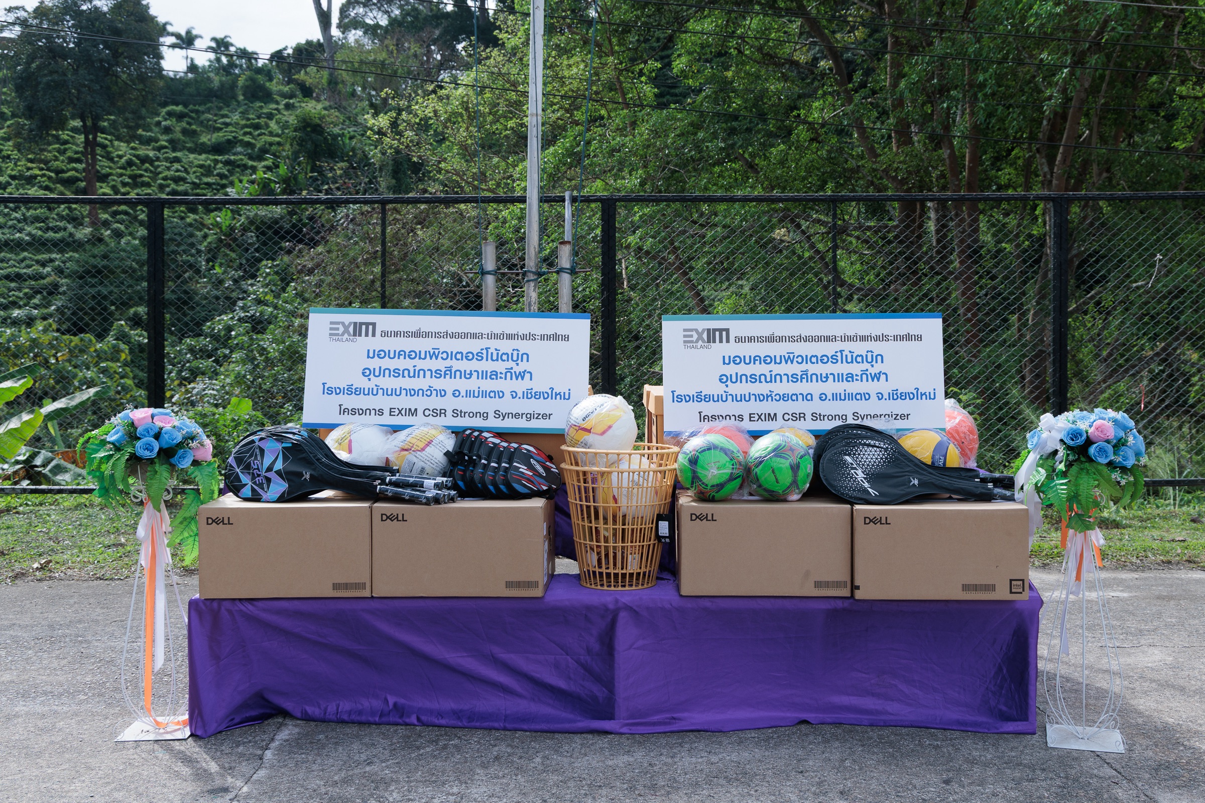 นายชลัช รัตนบุญนิธิ กรรมการผู้จัดการ ธนาคารเพื่อการส่งออกและนำเข้าแห่งประเทศไทย (EXIM BANK) และนายจักริน วังวิวัฒน์ กรรมการผู้จัดการ กลุ่มบริษัท ชาระมิงค์ จำกัด มอบเครื่องคอมพิวเตอร์โน้ตบุ๊ก อุปกรณ์การศึกษา และอุปกรณ์กีฬา ให้กับโรงเรียนบ้านปางห้วยตาด และโรงเรียนบ้านปางกว้าง อำเภอแม่แตง จังหวัดเชียงใหม่ ภายใต้โครงการ “EXIM CSR Strong Synergizer” เพื่อสนับสนุนการศึกษาและการพัฒนาคุณภาพชีวิตของเด็กและเยาวชนในพื้นที่ห่างไกล เพื่อส่งเสริมให้เด็กได้เรียนรู้อย่างเต็มศักยภาพ ควบคู่ไปกับการเล่นกีฬาและใช้เวลาว่างให้เกิดประโยชน์ โดยมีนางสาวอลินดา ศิริธีรธาดา ผู้อำนวยการโรงเรียนบ้านปางห้วยตาด และนายวิธาน บุญญา ผู้อำนวยการโรงเรียนบ้านปางกว้าง เป็นผู้รับมอบ ณ โรงเรียนบ้านปางห้วยตาด อำเภอแม่แตง จังหวัดเชียงใหม่ เมื่อวันที่ 8 พฤศจิกายน 2568