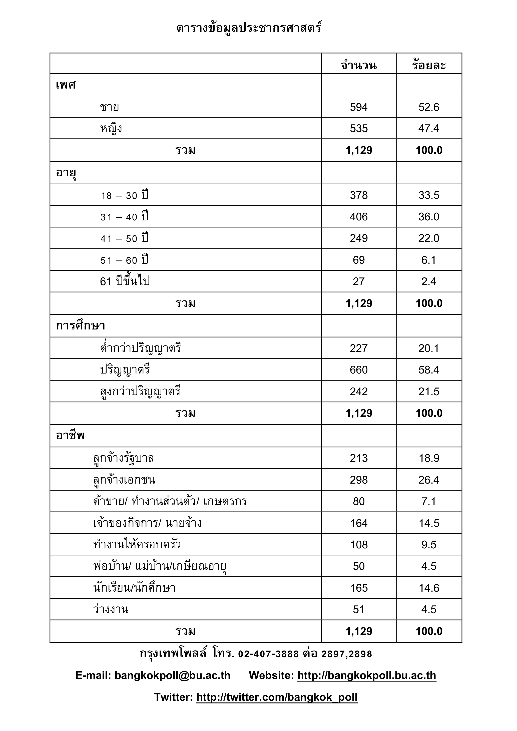 ระยะเวลาในการเก็บข้อมูล : 19 - 27 ตุลาคม 2568