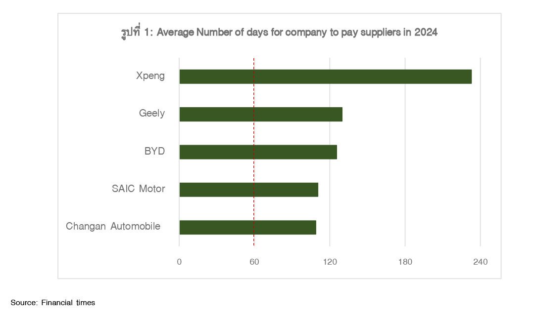 หลังทางการจีนทยอยออกมาตรการมาจัดการปัญหาสงครามราคา และกำลังการผลิตส่วนเกิน (Anti-involution) เช่น การกำหนดโควต้าสำหรับผลผลิต (output quotas) ในอุตสาหกรรมเหล็ก และถ่านหิน รวมถึงการปรับลดเวลาการจ่ายเงิน Supplier ของบริษัทรถยนต์ลงอยู่ที่ 60 วัน (รูปที่ 1) หนุนให้เงิน