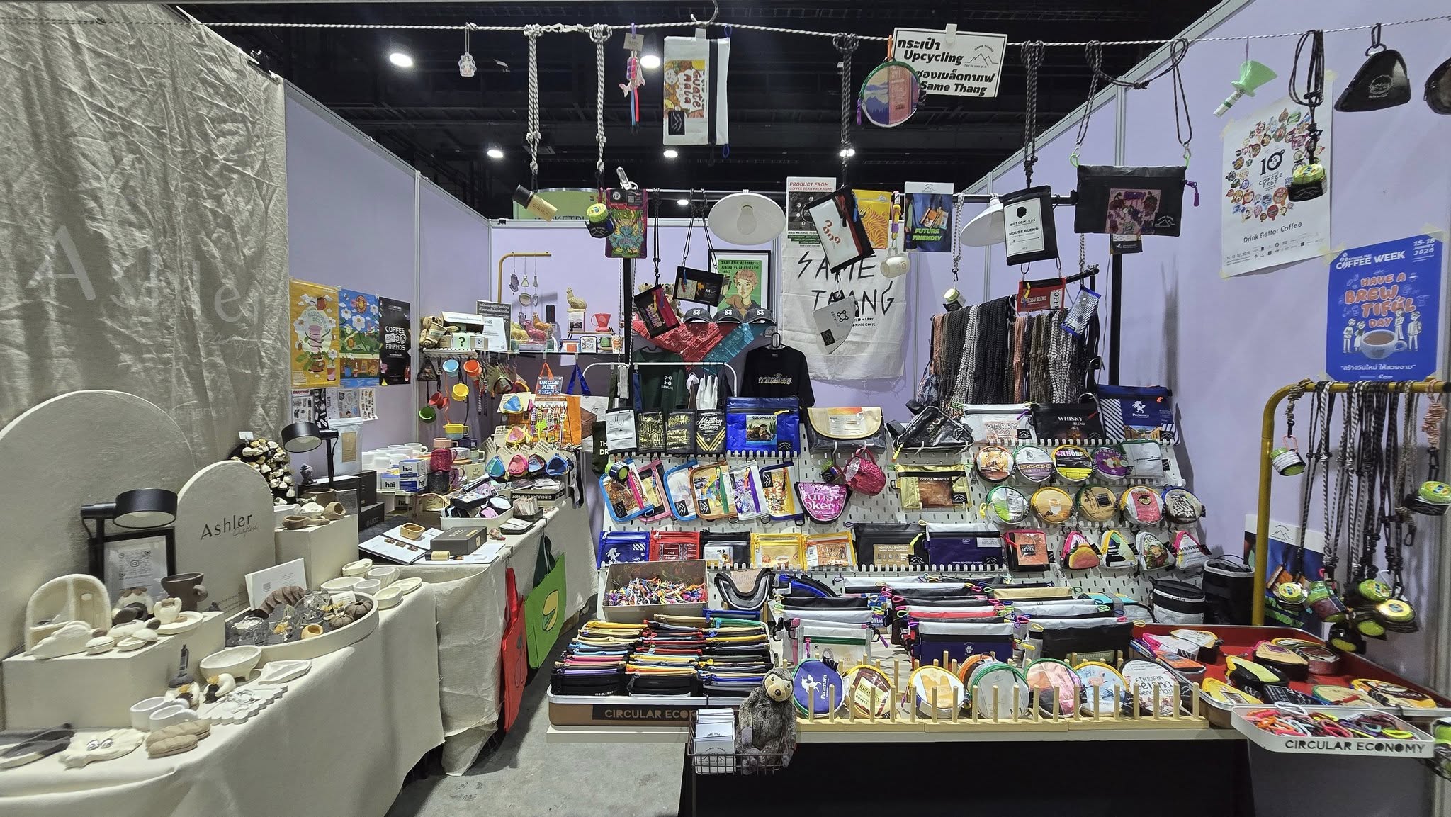 รวมถึง ร้านน้ำยางกล้วย คราฟต์ byวิสาหกิจชุมชนพืชภัณฑ์พัฒนา ร้านที่นำเสื้อผ้า กระเป๋าที่ เพ้นท์จากน้ำยางกล้วยและสีธรรมชาติเพื่อสร้างรายได้ให้กับคนในชุมชนและเกษตรกรสวนกล้วย ร้าน SAME THANG ร้านกระเป๋าที่ทำจากซองเมล็ดกาแฟที่ใช้แล้ว โดยช่างฝีมือชุมชน ร้านบ้านน้อย ร้านขนมไทยที่ใช้วัตถุดิบอินทรีย์ทั้งหมด ร้าน Khlong Song Nam ร้านจำหน่ายผ้าพันคอ กระเป๋า เสื้อ ตุ๊กตา อื่นๆ ที่ย้อมสีจากธรรมชาติ ฯลฯ ตลอดจน โซน Sustrend in Action ที่โชว์นวัตกรรมสีเขียวที่ยั่งยืน ผ่านความร่วมมือจากเหล่าพันธมิตรสายกรีน พิเศษสุด เพียงแค่มาร่วมทำกิจกรรมด้านความยั่งยืนในโซนนี้ ครบ 10 ดวง แลกรับพวงกุญแจ DIY จากฝากล่องข้าว Recycle 1 พวง