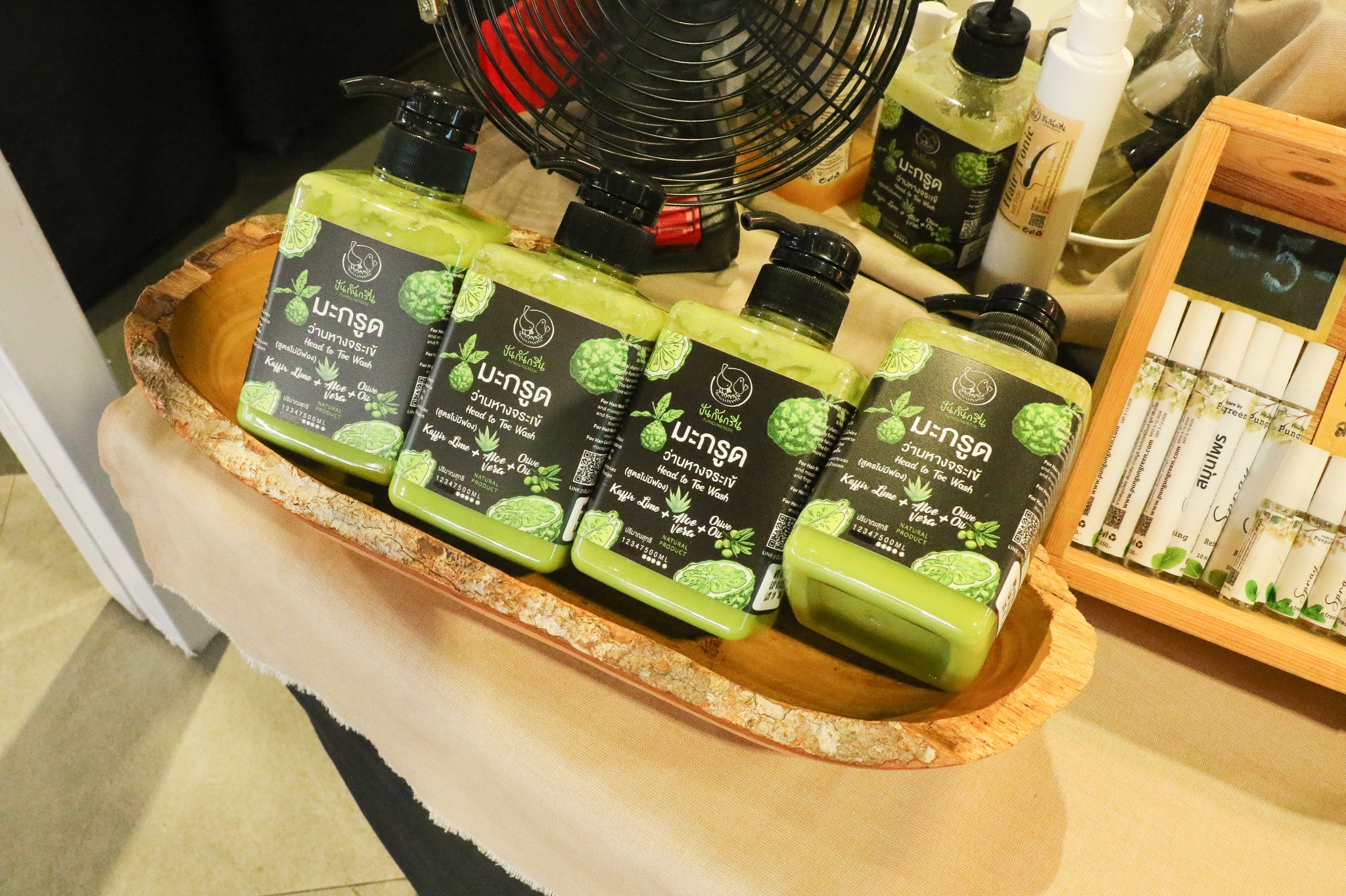 ECO FOOD NETWORK ร้านเครื่องหอมจากการสกัดจากผลผลิตทางธรรมชาติ น้ำปรุง เครื่องประทินผิว เครื่องหอม มาออกร้านปรุงแต่งกลิ่นกับชมพู่น้ำดอกไม้ จากเครือข่ายภาควิสาหกิจชุมชนเทือกเขาตะนาวศรี อำเภอทองผาภูมิ จังหวัดกาญจนบุรี