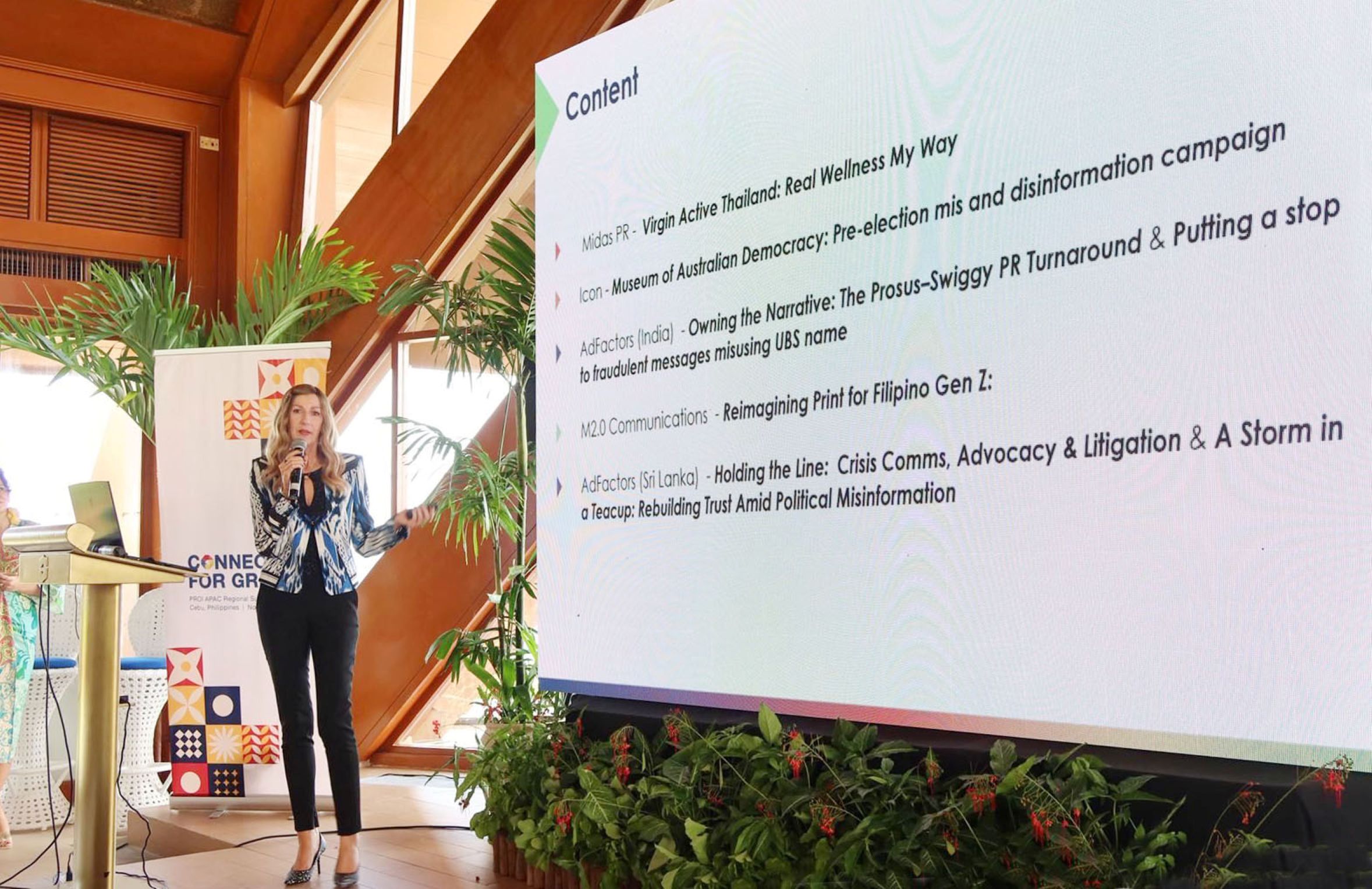 เมื่อสัปดาห์ที่ผ่านมา มิดัส พีอาร์เอเจนซี่ประชาสัมพันธ์ชั้นนำของประเทศไทย และสมาชิกตัวแทนเพียงหนึ่งเดียวของไทยในเครือข่าย Public Relations Organisation International (PROI Worldwide) ได้รับคัดเลือกให้เป็นตัวแทนของประเทศไทย เข้าร่วมงาน PROI APAC Summit 2025 ที่เมืองเซบูประเทศฟิลิปปินส์ โดยในงานนี้ มิดัส พีอาร์ ได้นำเสนอผลงานแคมเปญ “Real Wellness, My Way” ที่ทางบริษัทฯ สร้างสรรค์ให้กับ เวอร์จิ้น แอ็คทีฟ ประเทศไทย (Virgin Active Thailand) ต่อหน้าผู้เชี่ยวชาญด้านการสื่อสารชั้นนำจากทั่วภูมิภาคเอเชียแปซิฟิก