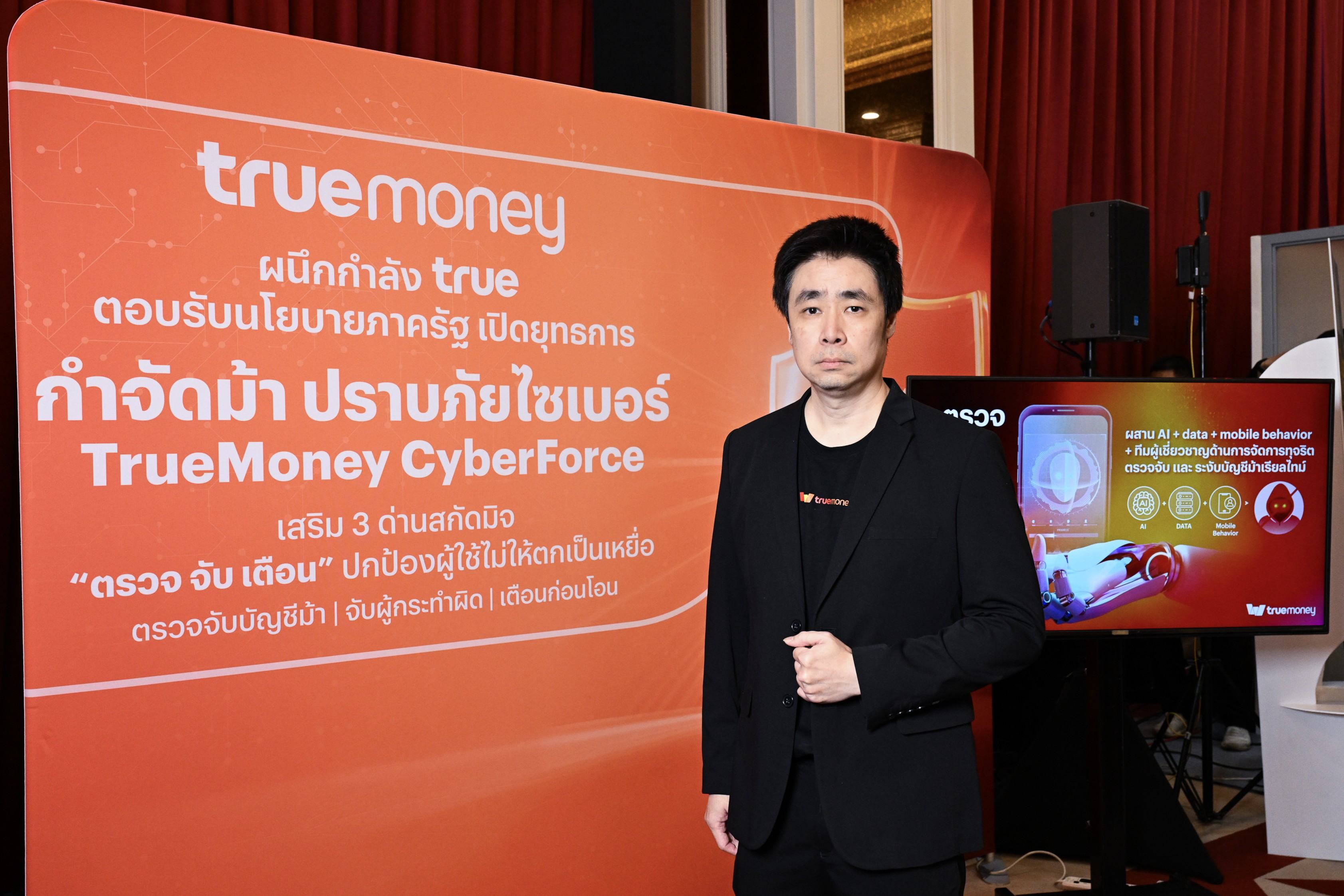 นายจักรกฤษณ์ อุไรรัตน์ หัวหน้าคณะผู้บริหารด้านรัฐกิจสัมพันธ์ บริษัท ทรู คอร์ปอเรชั่น จำกัด (มหาชน) กล่าวว่า “ในฐานะผู้ให้บริการโครงสร้างพื้นฐานดิจิทัลของประเทศ กลุ่มทรูมีความมุ่งมั่นในการยกระดับความปลอดภัยทางไซเบอร์ให้กับคนไทยทุกคน และเราภูมิใจที่ได้ร่วมสนับสนุนโครงการ TrueMoney CyberForce ซึ่งเป็นความร่วมมือเชิงรุกกับ ทรูมันนี่ ในครั้งนี้ เพื่อนำข้อมูลเชิงลึกจากเครือข่ายมาใช้ตรวจจับพฤติกรรมต้องสงสัยเสริมให้การสแกนและระงับบัญชีม้ามีประสิทธิภาพมากยิ่งขึ้น นอกจากนี้ เพื่อร่วมปกป้องภัยไซเบอร์ ทรูได้ลงทุนพัฒนาบริการ True CyberSafe ที่จะตรวจสอบและเฝ้าระวังภัยคุกคามไซเบอร์พร้อมระบบแจ้งเตือนแบบเรียลไทม์ตลอด 24 ชั่วโมงโดยไม่มีค่าใช้จ่ายใด ๆ สำหรับลูกค้าทรู ดีแทค และทรูออนไลน์ทั่วประเทศ โดยไม่ต้องติดตั้งแอปเพิ่มเติม ทั้งนี้ บริการดังกล่าวใช้เทคโนโลยี AI วิเคราะห์และบล็อกลิงก์?URL โดยช่วยปกป้องลูกค้าจากการคลิกลิงก์แปลกปลอมไปแล้ว ณ วันนี้ กว่า 2.5 พันล้านครั้ง รวมทั้งมีฟีเจอร์ “Call AI? Filter” ที่ช่วยคัดกรองสายเรียกเข้าที่อาจมาจากมิจฉาชีพ โดยใช้ AI ประมวลผลข้อมูลที่รวบรวมจากพฤติกรรมการใช้งานมือถือของมิจฉาชีพ และข้อมูลหมายเลขต้องสงสัยที่ได้จากตำรวจไซเบอร์รวมกว่า 300,000 หมายเลข และยังมีบริการแจ้ง 9777 บล็อกสายมิจฉาชีพ Scam Report แบบ One Stop Service ให้ประชาชนแจ้งบล็อกสายโทรเข้า SMS หลอกลวง และลิงก์อันตราย ที่ต้องสงสัย และส่งต่อข้อมูลให้เจ้าหน้าที่ตำรวจ พร้อมตอบกลับภายใน 24 ชั่วโมง ทั้งหมดนี้คือความพยายามในการร่วมสร้างสภาพแวดล้อมดิจิทัลที่ปลอดภัยและไว้วางใจได้สำหรับคนไทยอย่างแท้จริง”