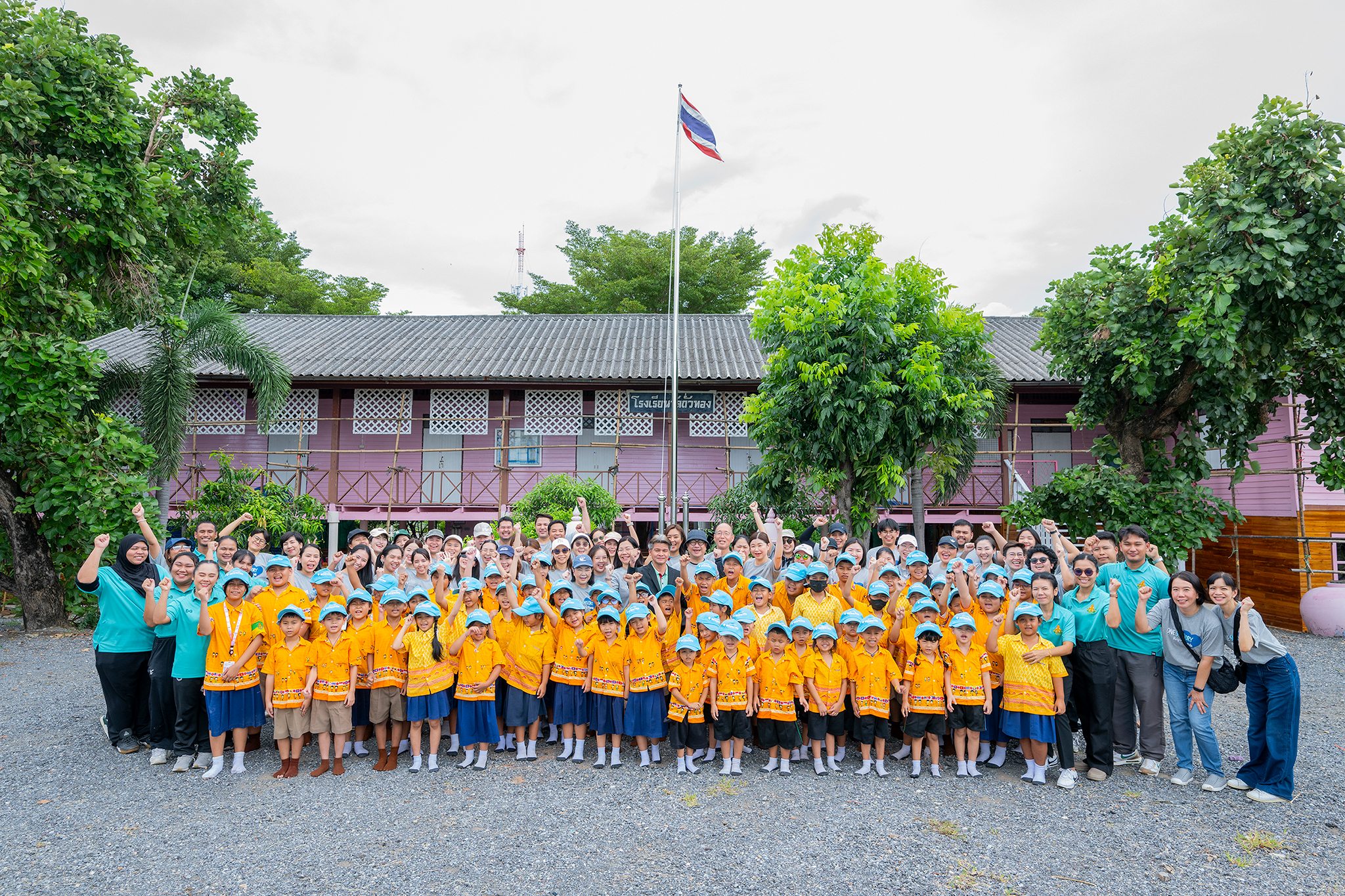 นางสาวเพียงจิต ศรีประสาธน์ รองประธานอาวุโสฝ่ายทรัพยากรบุคคลและบรรษัทสัมพันธ์ ประเทศไทยและอินโดไชน่า บริษัท ซันโทรี่ เบเวอเรจ แอนด์ ฟู้ด (ประเทศไทย) จำกัด กล่าวเพิ่มเติมเกี่ยวกับกิจกรรมในปีนี้ว่า “การจัดกิจกรรม ‘One Suntory Helping Hands’ ถือเป็นอีกหนึ่งความสำเร็จจากการร่วมแรงร่วมใจกันของทั้งสองบริษัทในเครือซันโทรี่ ภายใต้วัฒนธรรมองค์กรที่ยึดมั่นในแนวคิด ‘Better Together’ ซึ่งตอกย้ำว่าทุกความร่วมมือ ไม่ว่าจะเล็กหรือใหญ่ ล้วนมีคุณค่าและสามารถขับเคลื่อนการเปลี่ยนแปลงในเชิงบวกให้เกิดขึ้นได้จริง สำหรับโรงเรียนวัดถั่วทองนั้น นอกจากการทาสีปรับปรุงอาคารเรียนแล้ว พนักงานจิตอาสาของเรายังร่วมกันปรับปรุงแปลงผักสวนครัวของโรงเรียน เพื่อให้น้อง ๆ ได้มีพื้นที่เรียนรู้ด้านการเกษตร และสามารถนำผักปลอดสารพิษที่ปลูกได้ไปประกอบอาหารกลางวัน ช่วยลดค่าใช้จ่ายด้านวัตถุดิบ ซึ่งโรงเรียนสามารถนำงบประมาณส่วนนี้ไปพัฒนาในด้านอื่น ๆ ต่อไป นอกจากนั้น เรายังได้จัดกิจกรรมสันทนาการที่เต็มไปด้วยความสนุกสนาน ควบคู่ไปกับการให้ความรู้เรื่องการคัดแยกขยะอย่างถูกต้อง เพื่อปลูกจิตสำนึกด้านการอนุรักษ์สิ่งแวดล้อมให้แก่เยาวชน ซึ่งไม่เพียงสร้างประโยชน์ให้กับสังคมเท่านั้น แต่ยังช่วยเสริมสร้างความผูกพันและความภาคภูมิใจของพนักงาน (Employee Engagement) ในการเป็นส่วนหนึ่งขององค์กรที่ใส่ใจต่อผู้คนและสิ่งแวดล้อม โดยสอดคล้องกับอีกหนึ่งค่านิยมองค์กรของเรา คือ ‘การเติบโตอย่างยั่งยืน’ (Growing for Good) ที่มุ่งมั่นสร้างการเปลี่ยนแปลงเชิงบวกให้กับสังคมและสิ่งแวดล้อม ควบคู่ไปกับการเติบโตขององค์กร”