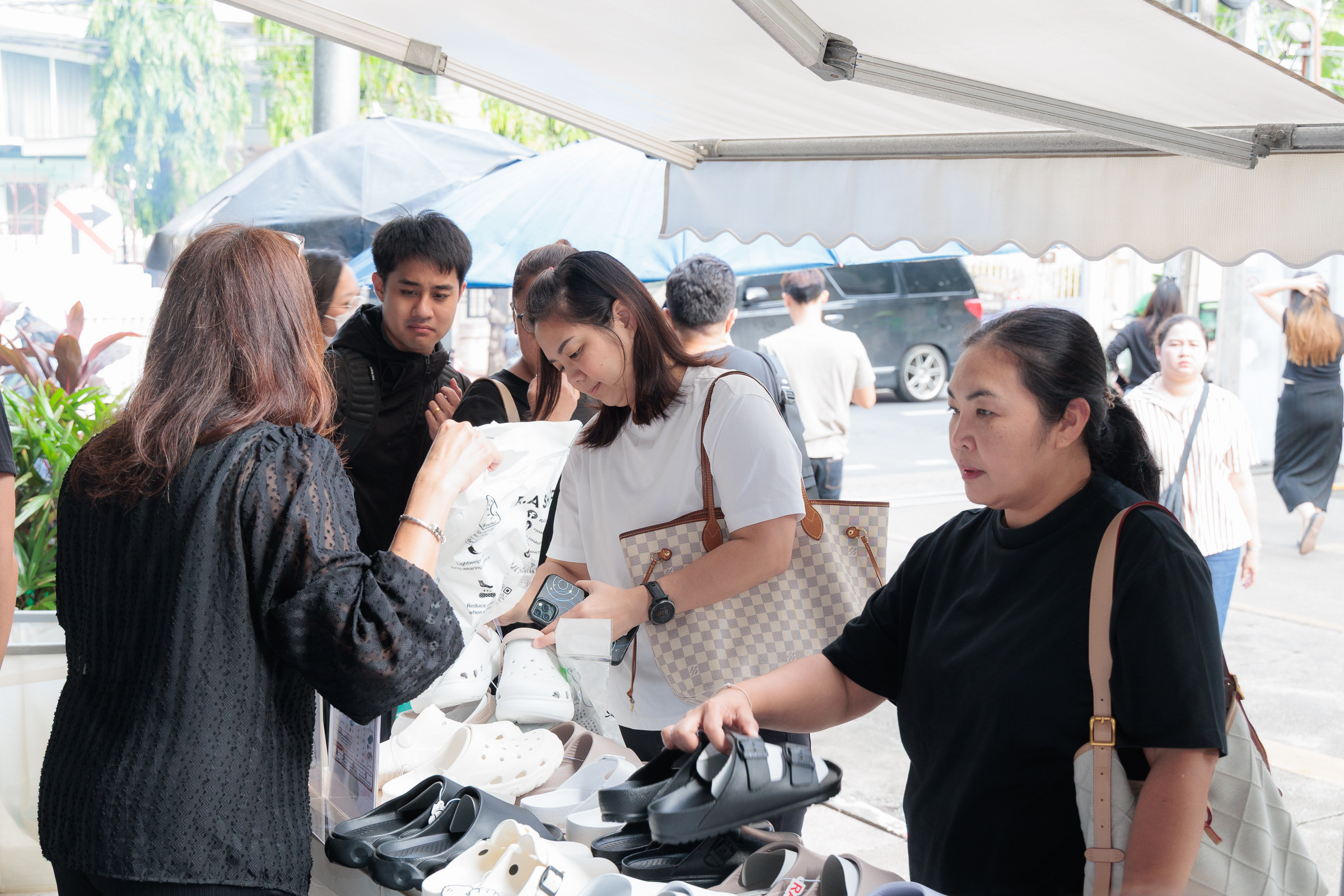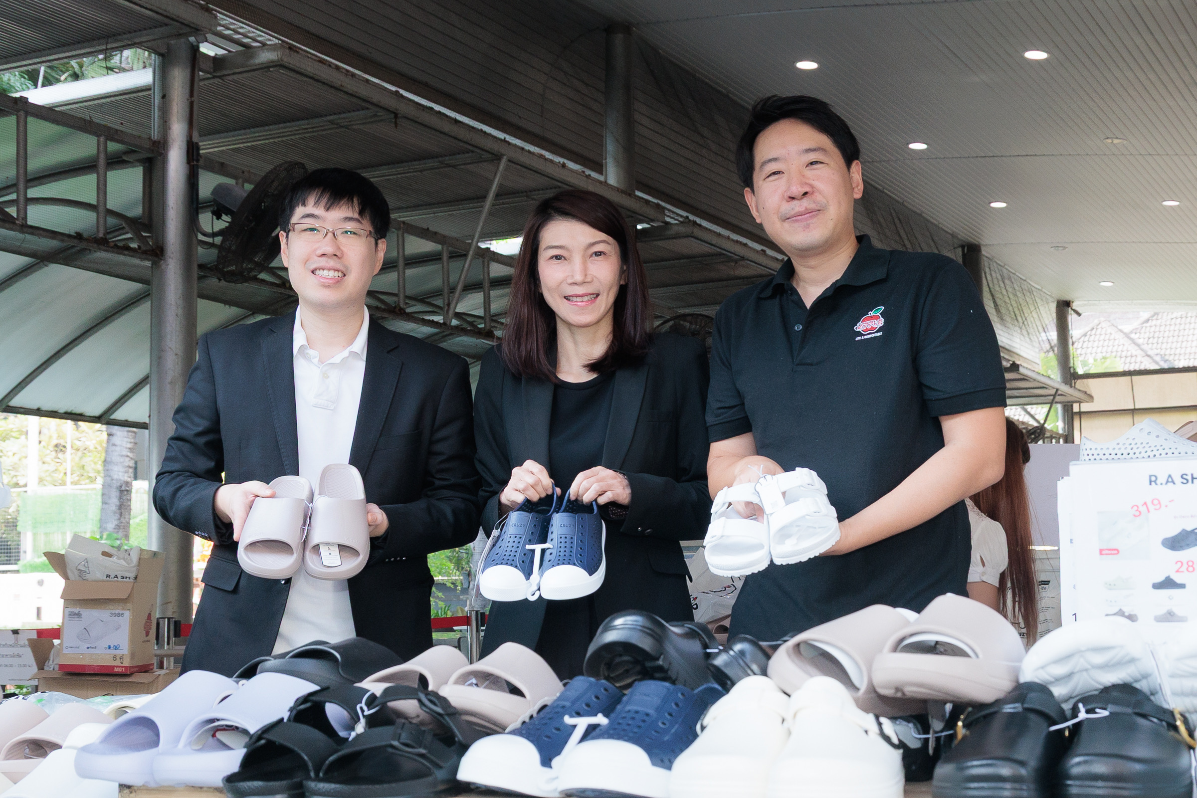 นางสาวนารีมาลย์ เจียงประดิษฐ์ ผู้ช่วยกรรมการผู้จัดการ ธนาคารเพื่อการส่งออกและนำเข้าแห่งประเทศไทย (EXIM BANK) พร้อมผู้บริหารและพนักงาน EXIM BANK ร่วมอุดหนุนสินค้าจากบริษัท อาร์เอ คอมเมิร์ซ จำกัด ผู้ผลิตและจำหน่ายรองเท้าแตะที่นุ่มเบาสบายดีไซน์ทันสมัย ผลิตจาก EVA Foam เกรดพรีเมียม ภายใต้แบรนด์ “R.A SHOP” ที่ใช้พลังงานสะอาดและผลิตจากกระบวนการที่เป็นมิตรกับสิ่งแวดล้อม โดยบริษัทเป็นผู้ประกอบการ SMEs ที่ผ่านการบ่มเพาะจาก EXIM BANK ในหลักสูตร EXIM 2X รุ่นที่ 1 และได้รับการจัดสรรพื้นที่ให้นำสินค้าคุณภาพส่งออกมาจำหน่ายโดยไม่มีค่าใช้จ่าย ณ EXIM BANK สำนักงานใหญ่ เมื่อวันที่ 14 พฤศจิกายน 2568