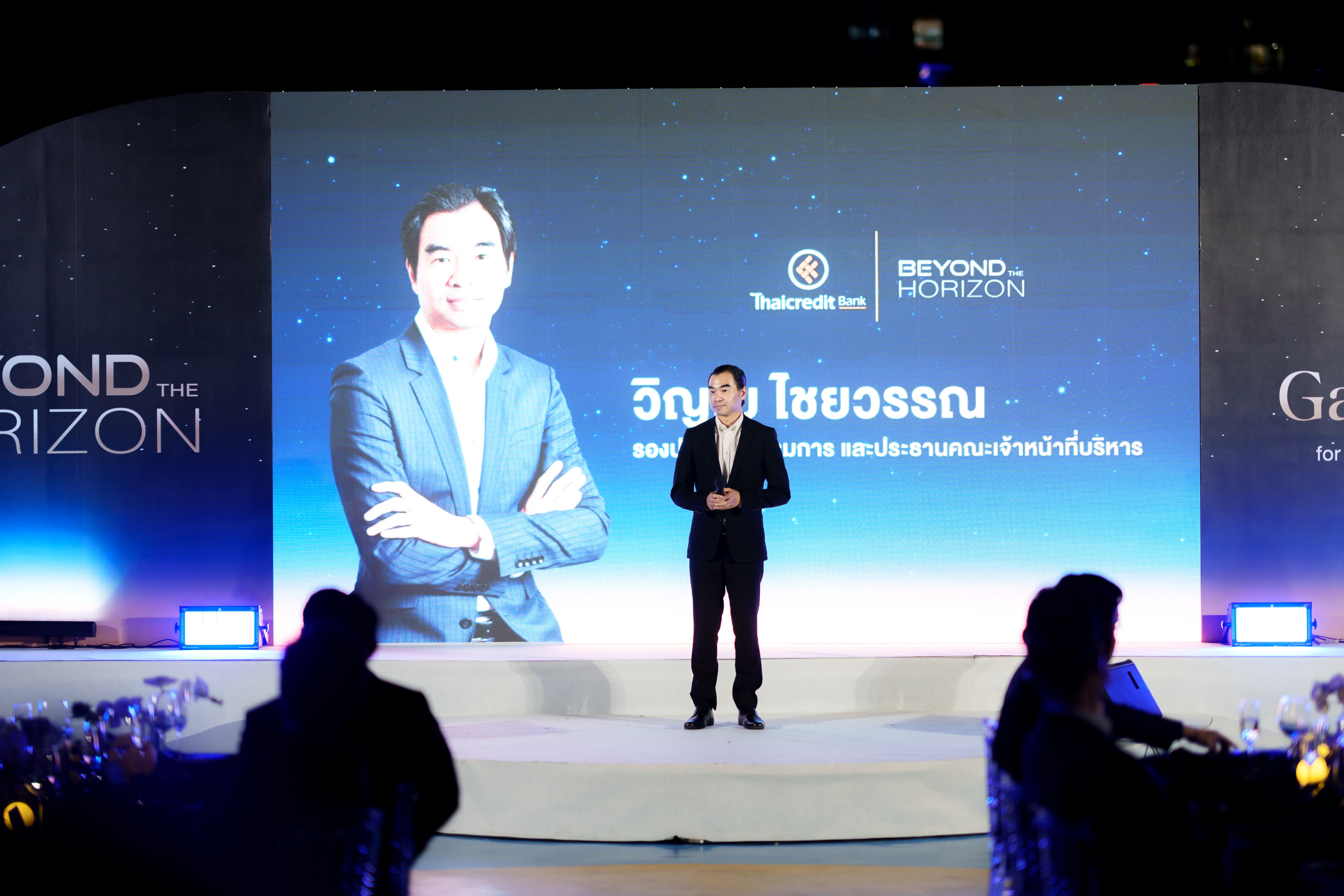 สำหรับงาน Beyond the Horizon Gala Night for Visionary Thai SMEs เป็นงานเลี้ยงเพื่อขอบคุณลูกค้าสินเชื่อไมโครเอสเอ็มอีและเอสเอ็มอีของธนาคารไทยเครดิต โดยลูกค้าทุกท่านที่เข้าร่วมงานได้สัมผัสกับความงดงามเหนือเส้นขอบฟ้ายามค่ำคืนของกรุงเทพมหานคร ในบรรยากาศที่เปี่ยมด้วยมนต์เสน่ห์ของแม่น้ำเจ้าพระยา ร่วมรับประทานอาหารมื้อค่ำสไตล์ตะวันตกจากเมนูสุดพิเศษ โดยเชฟอาร์ ธีรภัทร ตียาสุนทรานนท์ ผู้ชนะจากรายการ The Next Iron Chef Season 2
