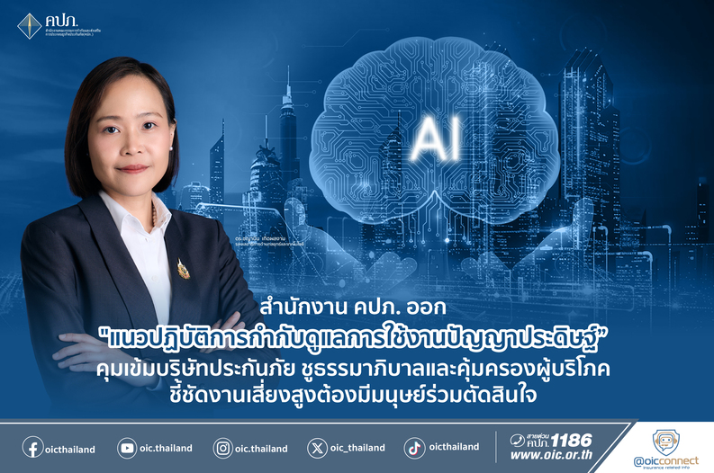 การเผยแพร่แนวปฏิบัติฉบับนี้ ถือเป็นก้าวสำคัญของสำนักงาน คปภ. ในการยกระดับมาตรฐานการกำกับดูแลเทคโนโลยีให้เท่าทันพัฒนาการในยุคดิจิทัล โดยมุ่งให้กฎเกณฑ์ไม่เป็นอุปสรรคต่อการนำนวัตกรรมมาใช้ แต่เป็นกลไกส่งเสริมนวัตกรรมอย่างรับผิดชอบ (Responsible Innovation) ที่ช่วยสร้างความเชื่อมั่นให้แก่ประชาชน ควบคู่กับการเสริมเสถียรภาพของระบบประกันภัยไทยในระยะยาว ผู้สนใจสามารถดาวน์โหลดเอกสาร แนวปฏิบัติการกำกับดูแลการใช้งานปัญญาประดิษฐ์สำหรับบริษัทประกันภัย (AI Governance Guideline) พ.ศ. 2568 ได้ที่ https://www.oic.or.th/th/rm-survey/
