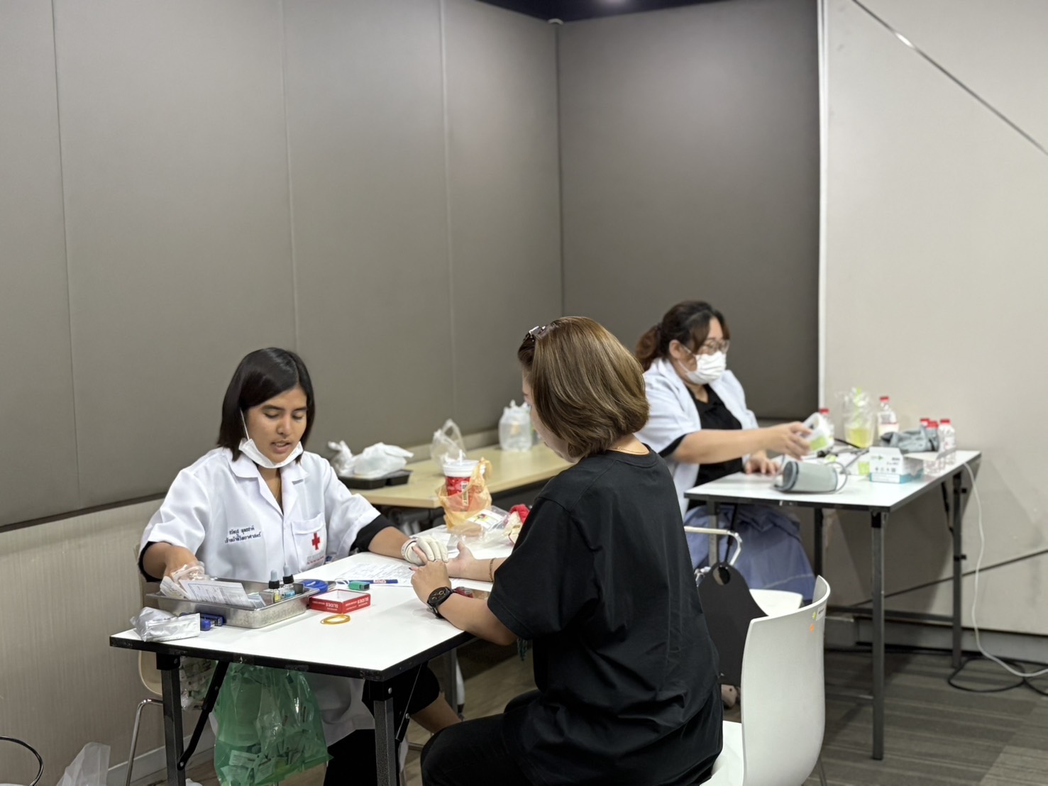 ดื่มน้ำ: 300-500 ซีซี ก่อนบริจาคประมาณ 30 นาที เพื่อช่วยให้เลือดไหลเวียนดี และลดความเสี่ยงเป็นลม