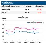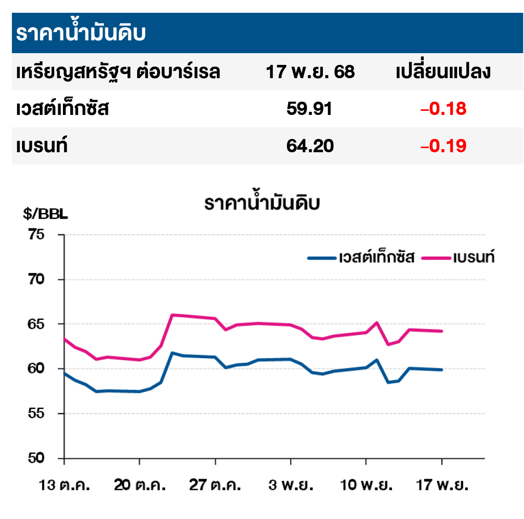 (-) ราคาน้ำมันดิบเวสต์เท็กซัสและเบรนท์ปรับลดลง หลังท่าเรือโนโวรอสซีสก์ของรัสเซียกลับมาดำเนินการอีกครั้ง หลังก่อนหน้ามีการระงับการส่งออกน้ำมันเป็นระยะเวลา 2 วัน จากการโจมตีของยูเครนที่สร้างความเสียหายต่อศูนย์กลางพลังงานของรัสเซีย ตลอดจนท่าเรือ และคลังน้ำมัน ทั้งนี้ ตลาดยังคงจับตามองการส่งออกน้ำมันดิบของรัสเซียที่อาจจะเพิ่มมากขึ้น หลังโรงกลั่นในรัสเซียยังคงถูกโจมตีจากยูเครนอย่างต่อเนื่อง ซึ่งจะเป็นปัจจัยทำให้ราคาน้ำมันดิบย่อตัวจากน้ำมันดิบที่ออกสู่ตลาดมากขึ้น