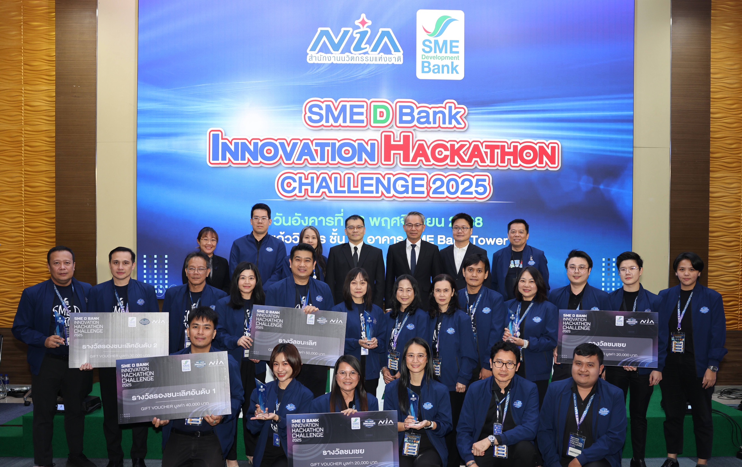 ธนาคารพัฒนาวิสาหกิจขนาดกลางและขนาดย่อมแห่งประเทศไทย (ธพว.) หรือ SME D Bank โดย นายเดชา จาตุธนานันท์ ประธานกรรมการ นายพิชิต มิทราวงศ์ กรรมการผู้จัดการ ร่วมเป็นประธาน และมอบรางวัลให้แก่ผู้ชนะเลิศการประกวดกิจกรรม “INNOVATION HACKATHON CHALLENGE 2025” ที่ธนาคารจัดขึ้น เพื่อเปิดโอกาสให้บุคลากรทุกระดับขององค์กร ได้แสดงศักยภาพด้านความคิดสร้างสรรค์ นำเสนอแนวทางการใช้นวัตกรรมที่ช่วยเพิ่มศักยภาพให้แก่องค์กร พร้อมต่อยอดสู่การสนับสนุนลูกค้าธนาคารและผู้ประกอบการเอสเอ็มอีได้อย่างเป็นรูปธรรม โดยเปิดพื้นที่ให้ผู้เข้าร่วมนำเสนอโครงการหรือแผนงานที่สามารถนำไปใช้จริงในการปฏิบัติงาน สร้างวัฒนธรรมการเรียนรู้ การร่วมคิดร่วมทำ และพัฒนานวัตกรรมภายในองค์กรอย่างต่อเนื่อง ก่อให้เกิดการมีส่วนร่วมของคนทั้งองค์กร ซึ่งเป็นพลังสำคัญขับเคลื่อนธนาคารสู่การเป็นองค์กรแห่งการเติบโตและความยั่งยืนในอนาคต