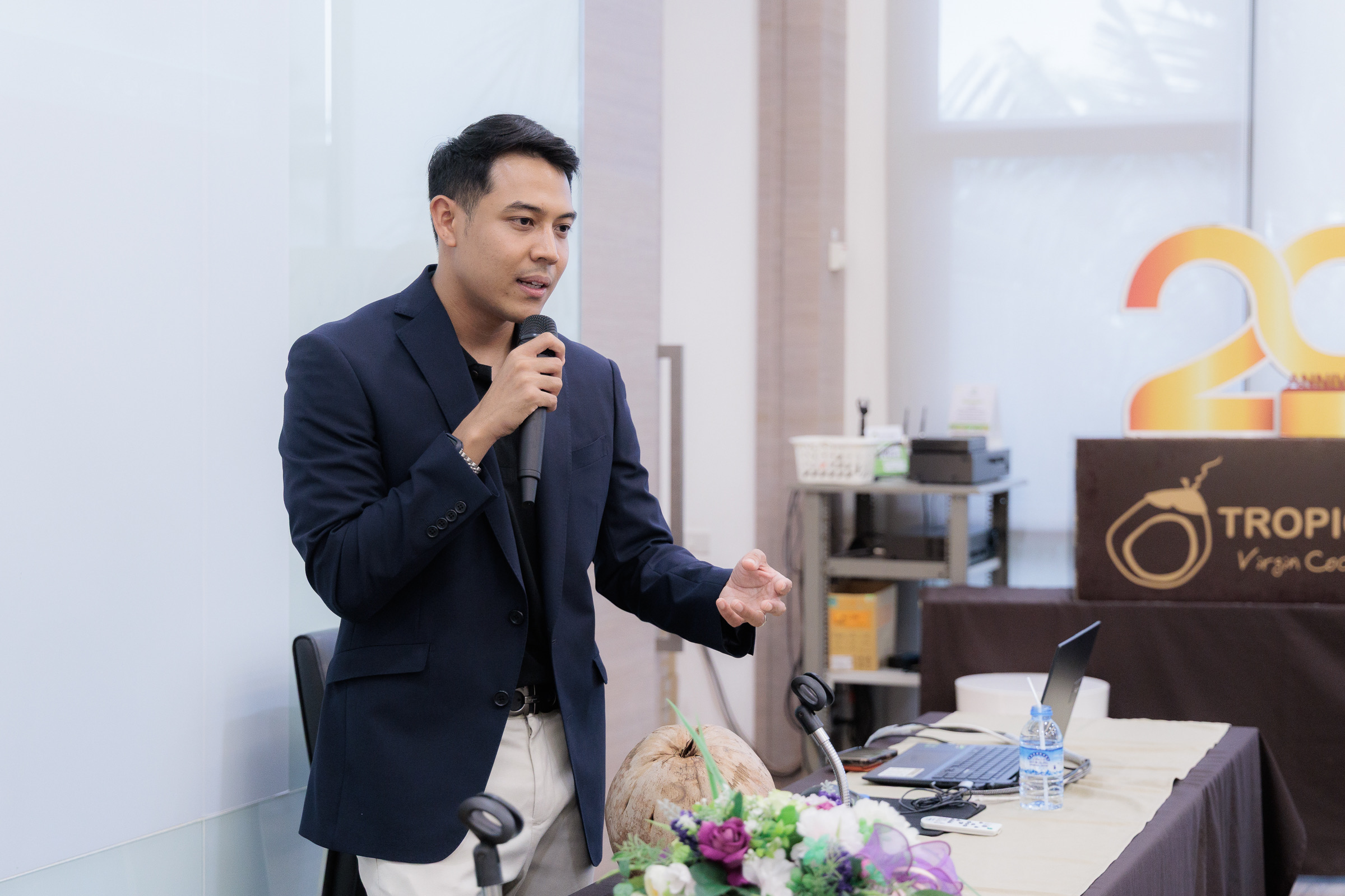 ดร.วโรทัย โกศลพิศิษฐ์กุล กรรมการ ธนาคารเพื่อการส่งออกและนำเข้าแห่งประเทศไทย (EXIM BANK) และนางสาวดรัสวันต์ ชูวงษ์ รองกรรมการผู้จัดการ EXIM BANK นำคณะผู้ประกอบธุรกิจส่งออกที่เข้าร่วมอบรมหลักสูตร EXIM 2X ศึกษาดูงานสถานประกอบการต้นแบบบริษัท ทรอปิคานา ออยล์ จำกัด ผู้ผลิตและจำหน่ายน้ำมันมะพร้าวสกัดเย็นจากมะพร้าวไทยออร์แกนิกจังหวัดสุราษฏร์ธานี นอกจากนี้ยังมีสินค้าแปรรูปเป็นผลิตภัณฑ์เครื่องสำอางชนิดต่าง ๆ ภายใต้แบรนด์ทรอปิคานา (Tropicana) ส่งออกและจำหน่ายใน 20 ประเทศทั่วโลก เพื่อแลกเปลี่ยนเรียนรู้ด้านการพัฒนาผลิตภัณฑ์จากภูมิปัญญาท้องถิ่น การขยายตลาดส่งออก และการบริหารจัดการซัพพลายเชนอย่างมีประสิทธิภาพ โดยมีนายสุรเดช นิลเอก กรรมการผู้จัดการ บริษัท ทรอปิคานา ออยล์ จำกัด ให้การต้อนรับ ณ ที่ทำการบริษัท อำเภอนครชัยศรี จังหวัดนครปฐม เมื่อวันที่ 18 พฤศจิกายน 2568