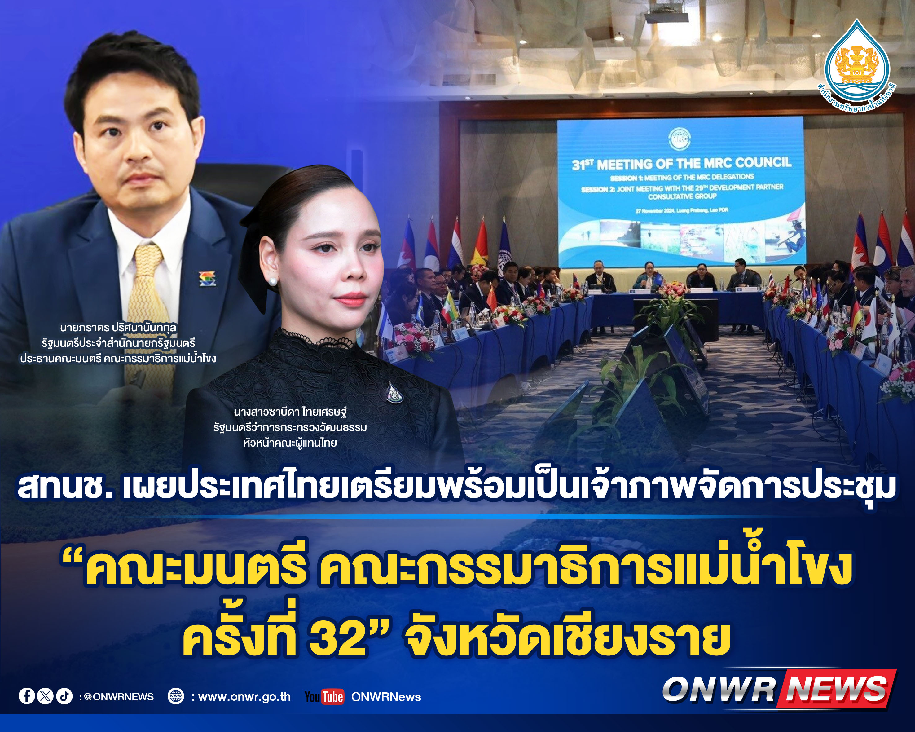 นายดนุชา พิชยนันท์ เลขาธิการสำนักงานทรัพยากรน้ำแห่งชาติ (สทนช.) เปิดเผยว่า รัฐบาลไทย โดยสำนักงานทรัพยากรน้ำแห่งชาติ (สทนช.) ในฐานะสำนักเลขาธิการคณะกรรมการแม่น้ำโขงแห่งชาติไทย ร่วมกับสำนักงานเลขาธิการคณะกรรมาธิการแม่น้ำโขง (MRCS) จะเป็นเจ้าภาพร่วมจัดการประชุมคณะมนตรี คณะกรรมาธิการแม่น้ำโขง ครั้งที่ 32 และการประชุมระหว่างคณะมนตรี คณะกรรมาธิการแม่น้ำโขง และหุ้นส่วนการพัฒนา ครั้งที่ 30 ในระหว่างวันที่ 25 - 27 พฤศจิกายน 2568 ณ โรงแรม เลอ เมอริเดียน รีสอร์ท จังหวัดเชียงราย และเนื่องจากปี 2568 เป็นปีที่การลงนามข้อตกลงความร่วมมือแม่น้ำโขง โดยคณะกรรมาธิการแม่น้ำโขง ครบรอบ 30 ปี ประเทศไทยในฐานะประเทศเจ้าภาพฯ จึงได้กำหนดให้มีการประชุมที่จังหวัดเชียงราย ซึ่งเป็นสถานที่ลงนามข้อตกลงฯ เมื่อปี 2538 เพื่อเน้นย้ำถึงบทบาทในการเป็นผู้นำด้านการบริหารจัดการทรัพยากรน้ำในลุ่มน้ำโขงของไทย และการเสริมสร้างความเข้มแข็งความร่วมมือระหว่างประเทศสมาชิกอย่างต่อเนื่อง คณะผู้แทนไทยนำโดย นายภราดร ปริศนานันทกุล รัฐมนตรีประจำสำนักนายกรัฐมนตรี ในฐานะประธานคณะมนตรี คณะกรรมาธิการแม่น้ำโขง จะทำหน้าที่ประธานในการประชุมดังกล่าว และมีนางสาวซาบีดา ไทยเศรษฐ์ รัฐมนตรีว่าการกระทรวงวัฒนธรรม ร่วมประชุมในฐานะหัวหน้าคณะผู้แทนไทย