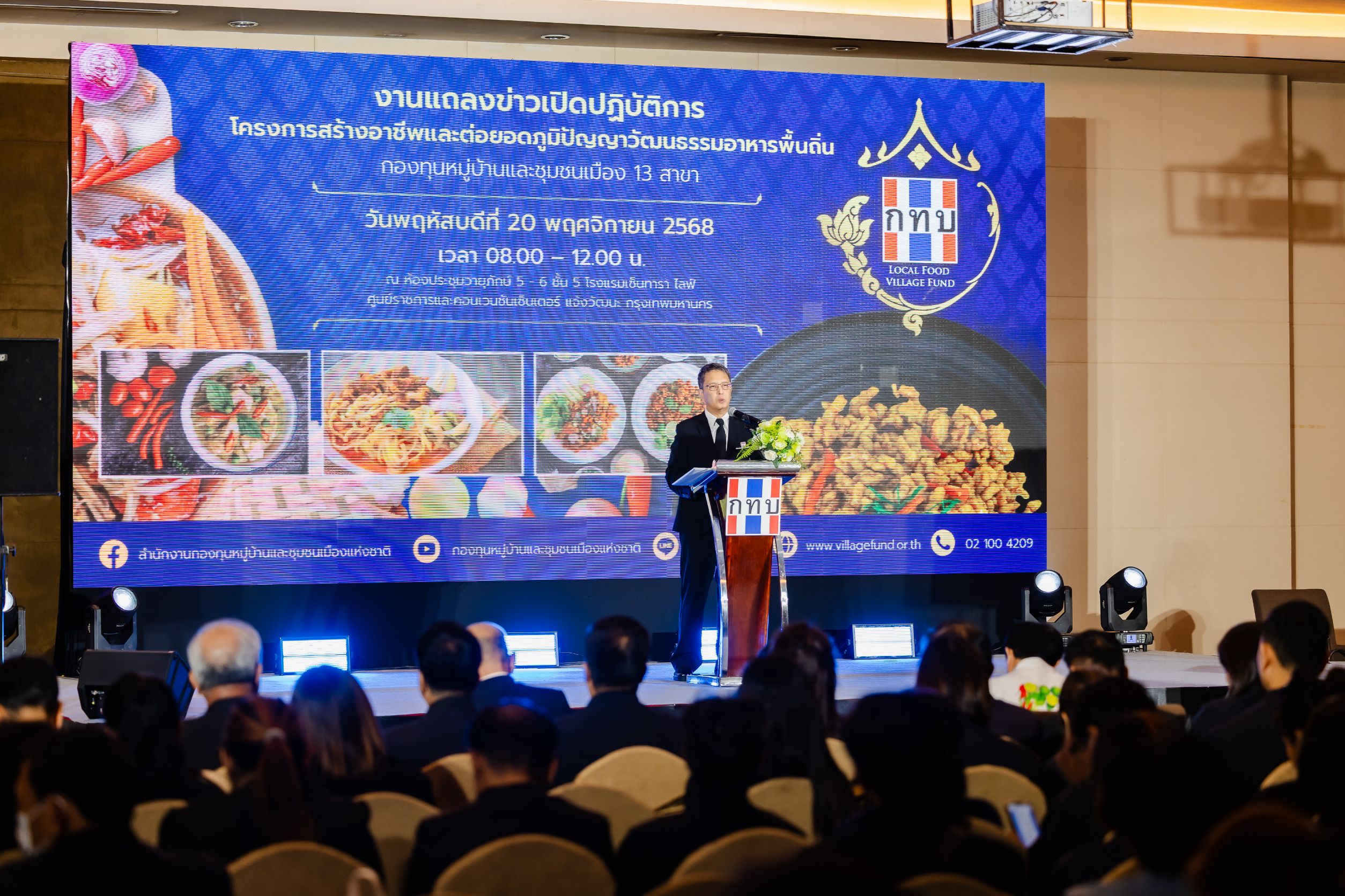สำนักงานกองทุนหมู่บ้านและชุมชนเมืองแห่งชาติ (สทบ.) จัดแถลงข่าวเปิดปฏิบัติการ “โครงการสร้างอาชีพและต่อยอดภูมิปัญญาวัฒนธรรมอาหารพื้นถิ่น กองทุนหมู่บ้านและชุมชนเมือง 13 สาขา” โดยนายโสวัฒน์ อยู่คงดี ผู้ช่วยผู้อำนวยการ สำนักงานกองทุนหมู่บ้านและชุมชนเมืองแห่งชาติ ให้เกียรติร่วมแถลง