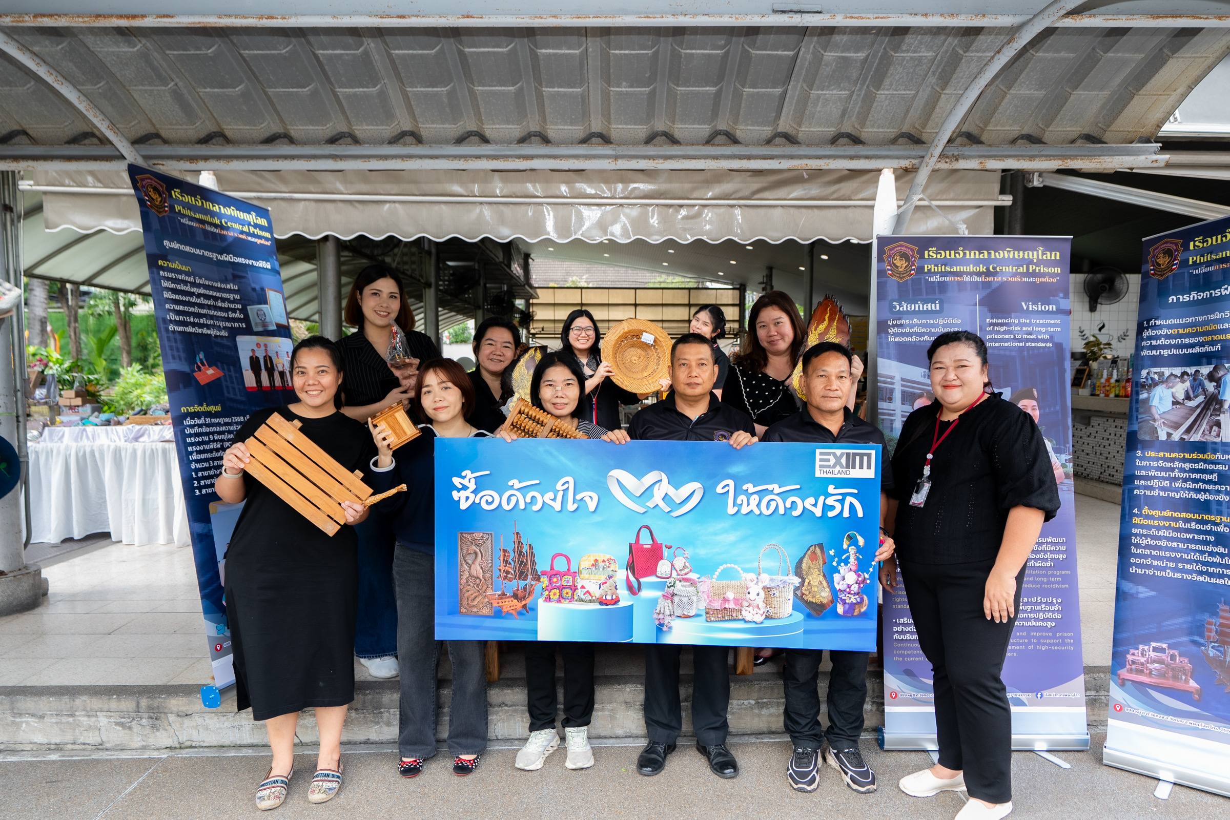 นายชลัช รัตนบุญนิธิ กรรมการผู้จัดการ ธนาคารเพื่อการส่งออกและนำเข้าแห่งประเทศไทย (EXIM BANK) พร้อมผู้บริหารและพนักงาน EXIM BANK ร่วมอุดหนุนสินค้าโครงการ “ซื้อด้วยใจ ให้ด้วยรัก” จัดขึ้นระหว่างวันที่ 20-21 พฤศจิกายน 2568 เพื่อสนับสนุนผลิตภัณฑ์จากการฝึกอาชีพของกลุ่มบุคคลที่ควรได้รับโอกาสทางสังคมจากเรือนจำจังหวัดพิษณุโลก เรือนจำกลางพิษณุโลก และทัณฑสถานหญิงพิษณุโลก ซึ่งจัดจำหน่ายผลิตภัณฑ์งานหัตถกรรมหลากหลายประเภท อาทิ กระเป๋าผ้า งานจักสาน งานไม้ ของตกแต่งบ้าน และตุ๊กตา ที่ผ่านกระบวนการผลิตอย่างประณีต มีคุณภาพดี และสามารถนำไปต่อยอดเป็นอาชีพเพื่อสร้างรายได้จริงหลังพ้นโทษ ณ EXIM BANK สำนักงานใหญ่ เมื่อวันที่ 20 พฤศจิกายน 2568