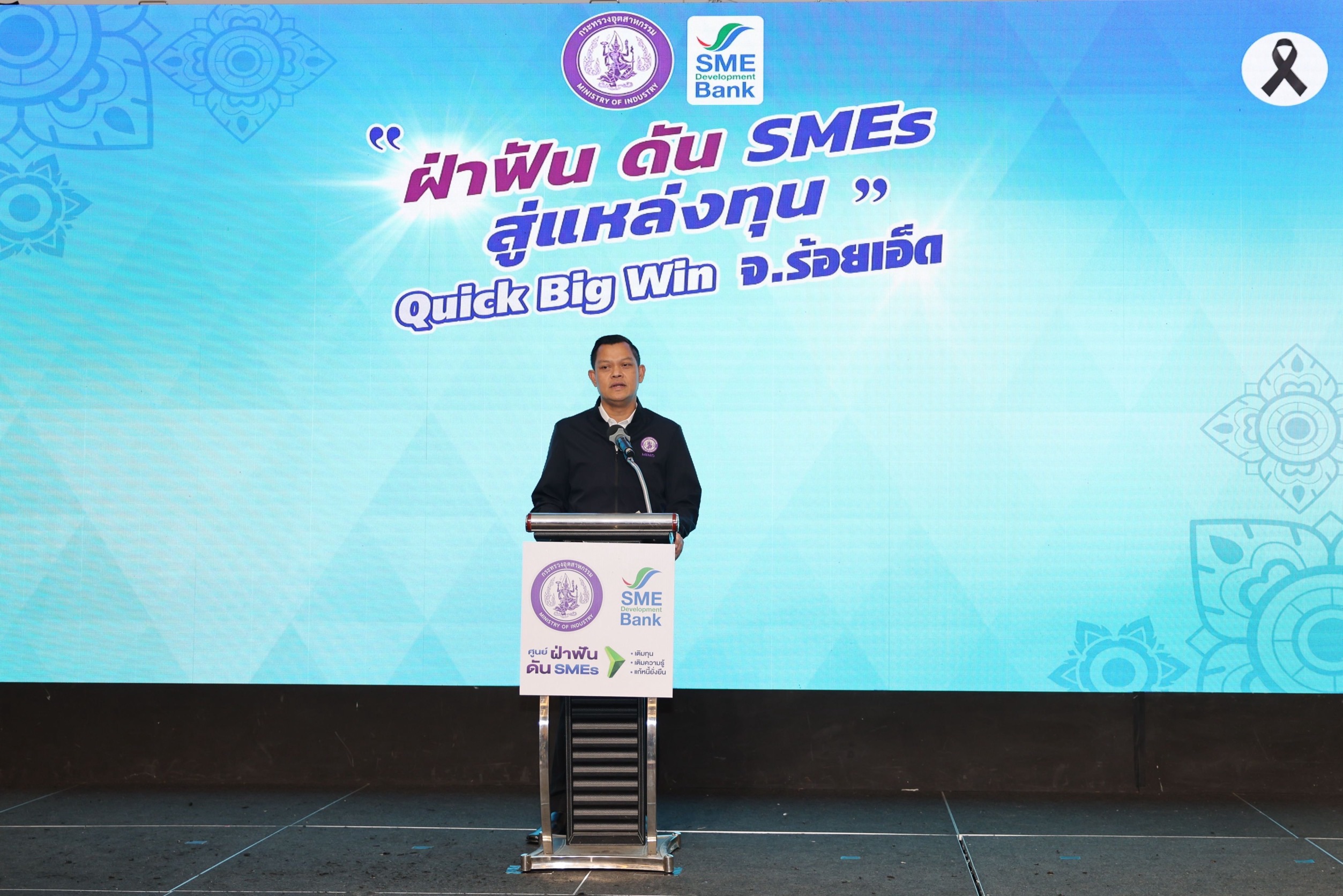 กระทรวงอุตสาหกรรม มอบหมาย SME D Bank ขับเคลื่อนนโยบาย "ฝ่า ฟัน ดึง ดัน" เสริมแกร่งเอสเอ็มอีในส่วนภูมิภาค จัดใหญ่มหกรรม "ฝ่าฟัน ดัน SMEs สู่แหล่งทุน" ประเดิม จ.ร้อยเอ็ด พาผู้ประกอบการเข้าถึงบริการ "3 เติม" ได้แก่ เติมทุนดอกเบี้ยพิเศษ 3%ต่อปี เติมความรู้ Upskill Reskill ยกระดับธุรกิจ และเติมโอกาสแก้ไขหนี้ยั่งยืน ช่วยก้าวผ่านวิกฤต เดินหน้าต่อสู่การเติบโตยั่งยืน