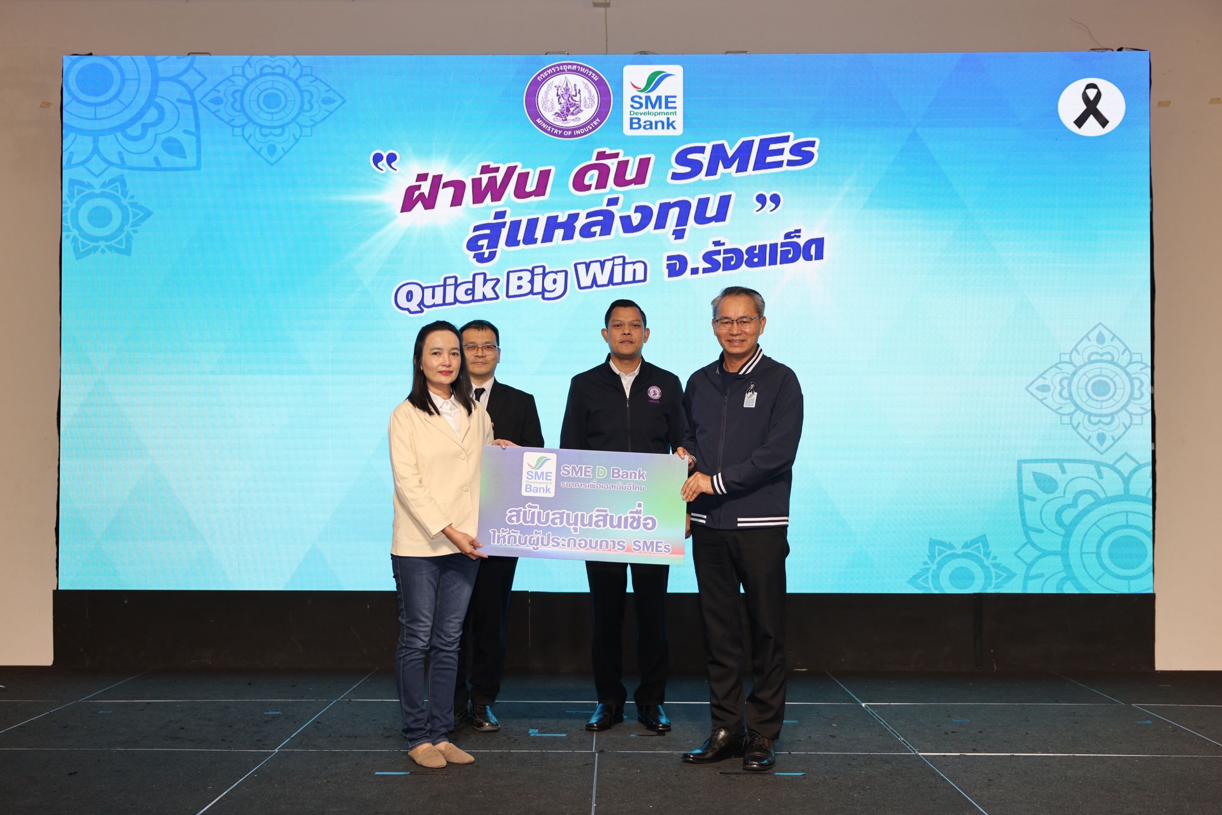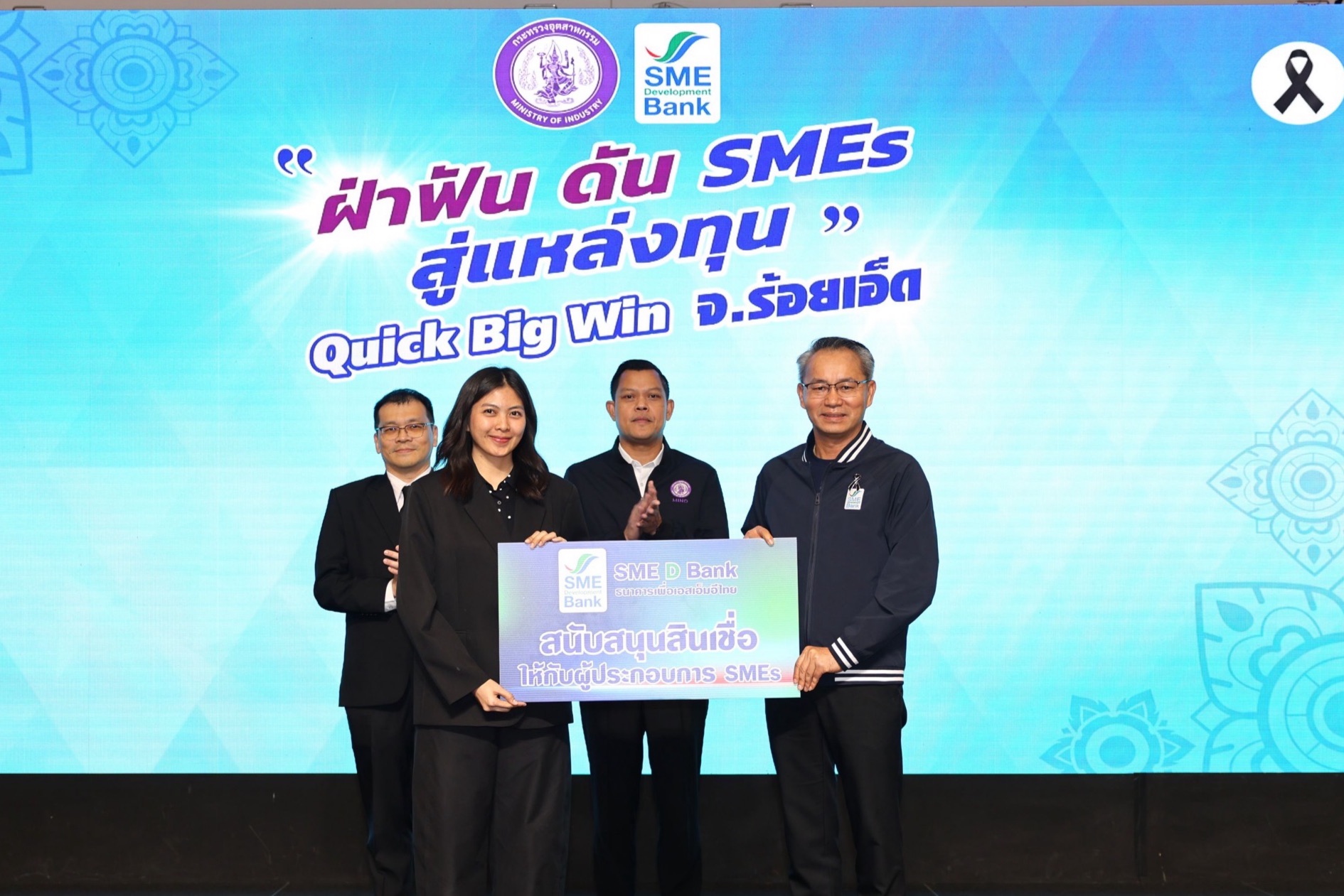 ทั้งนี้ เพื่อให้ความช่วยเหลือเอสเอ็มอีอย่างทั่วถึงในส่วนภูมิภาคได้มอบนโยบายให้ธนาคารพัฒนาวิสาหกิจขนาดกลางและขนาดย่อมแห่งประเทศไทย (ธพว.) หรือ SME D Bank สถาบันการเงินเฉพาะกิจของรัฐ ในกำกับของกระทรวงอุตสาหกรรม ที่มีบทบาทสำคัญต่อการช่วยเหลือและสนับสนุนเอสเอ็มอีไทย ผนึกกำลังกับหน่วยงานพันธมิตรภาครัฐ และภาคเอกชน จัดมหกรรม “ฝ่าฟัน ดัน SMEs สู่แหล่งทุน” กระจายในพื้นที่ต่างๆ โดยนำร่องที่ จ.ร้อยเอ็ด ช่วยให้เอสเอ็มอีในพื้นที่เข้าถึงบริการด้านการเงิน การพัฒนา และแก้ไขหนี้ยั่งยืน ได้อย่างรวดเร็ว สะดวกสบาย และสามารถฝ่าฟันวิกฤตความท้าทายต่าง ๆ ได้อย่างทันท่วงที