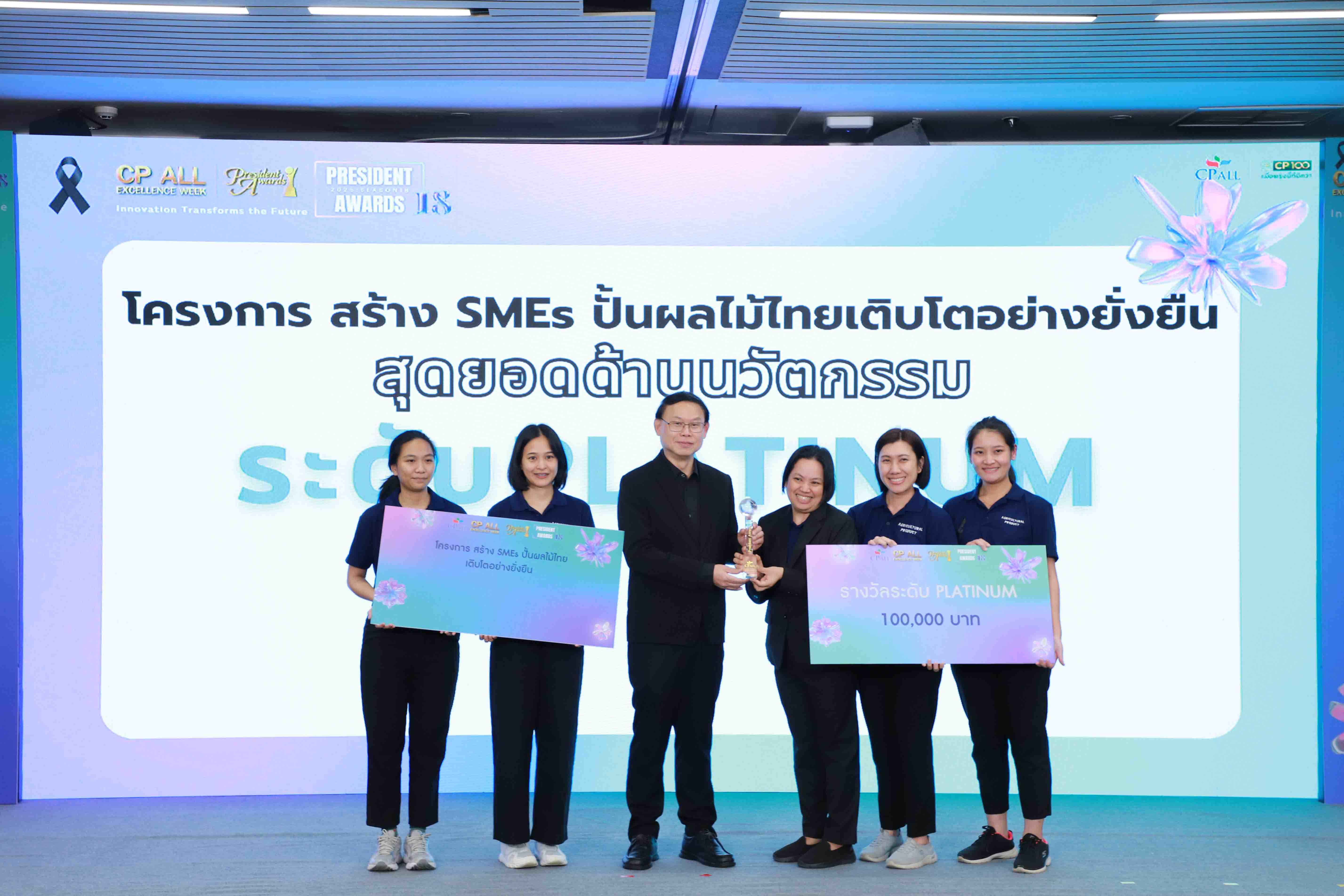 โดยมีผลงานนวัตกรรมที่ผ่านเข้ารอบและได้รับรางวัลรวมทั้งสิ้น 15 โครงการ สะท้อนถึงศักยภาพของบุคลากรในทุกสายงานที่พร้อมต่อยอดแนวคิดสู่การใช้งานจริง หนึ่งในไฮไลต์สำคัญของงานคือ โครงการ “สร้าง SMEปั้นผลไม้ไทยเติบโตอย่างยั่งยืน” ที่สามารถคว้ารางวัลระดับ PLATINUM อันทรงเกียรติ ได้รับเกียรติบัตร โล่และเงินรางวัลมูลค่า 100,000 บาท ซึ่งคณะกรรมการยกย่องว่าเป็นโครงการที่โดดเด่นทั้งด้านแนวคิดเชิงกลยุทธ์ ผลลัพธ์ที่เป็นรูปธรรม และศักยภาพในการขยายผลสู่การสร้างคุณค่าร่วมกับสังคมอย่างยั่งยืน