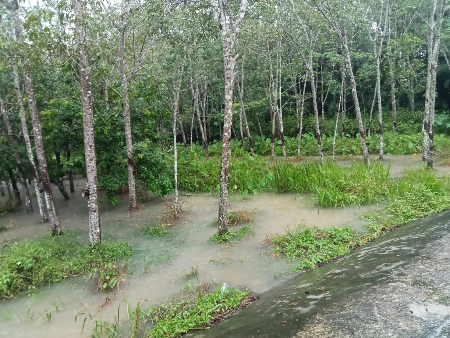 นายดิษฐเดช วัฒนาพร รองผู้ว่าการด้านปฏิบัติการ กล่าวว่า จากสถานการณ์ฝนตกหนักต่อเนื่องในพื้นที่หลายจังหวัดทางภาคใต้ ได้แก่ จ.นครศรีธรรมราช จ.พัทลุง จ.ชุมพร จ.สุราษฎร์ธานี จ.ตรัง จ.สงขลา และ จ.สตูล ส่งผลให้เกิดน้ำท่วมและน้ำป่าไหลหลากเข้าพื้นที่การเกษตรอย่างรุนแรง โดยเฉพาะพื้นที่ปลูกยางพารา กยท. คาดว่าจะมีปริมาณผลผลิตยางที่ได้รับผลกระทบจากสถานการณ์ฝนตกหนักต่อเนื่องทั้ง 7 จังหวัด รวมกว่า 10,296.93 ตันในส่วนจังหวัดที่ได้รับผลกระทบจากสถานการณ์อย่างรุนแรง ได้แก่ จ.นครศรีธรรมราช และ จ.พัทลุง ครอบคลุมในหลายอำเภอ อาทิ อ.ร่อนพิบูลย์ อ.ทุ่งสง และ อ.ฉวาง ใน จ.นครศรีธรรมราช และ อ.ควนขนุน อ.ป่าพะยอม และ อ.ศรีบรรพต ใน จ.พัทลุง สร้างความเดือดร้อนต่อชาวสวนยางและประชาชนหลายพื้นที่และมีต่อปริมาณผลผลิตยาง โดยเบื้องต้น กยท. คาดการณ์ว่าจะมีพื้นที่สวนยางใน 2 จังหวัดดังกล่าวได้รับผลกระทบ เป็นพื้นที่รวมกว่า 83,580 ไร่ และมีเกษตรกรชาวสวนยางได้รับผลกระทบ รวมกว่า 14,800 ราย (ข้อมูล ณ วันที่ 20 พ.ย. 68)