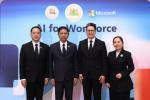 ไมโครซอฟท์ ประเทศไทย และกระทรวงแรงงาน โดยกรมพัฒนาฝีมือแรงงาน ประกาศความร่วมมือครั้งสำคัญเพื่อเร่งสร้างแรงงานไทยที่มีความพร้อม เพิ่มศักยภาพการแข่งขันในยุคปัญญาประดิษฐ์ (AI) เดินหน้ามอบทักษะ AI และประกาศนียบัตรซึ่งเป็นที่ยอมรับในอุตสาหกรรมให้กับแรงงาน 150,000 คนทั่วประเทศ เพื่อสนับสนุนแผนพัฒนาเศรษฐกิจและสังคมแห่งชาติของประเทศไทย และขับเคลื่อนวิสัยทัศน์ของประเทศสู่ Workforce 5.0 ยกระดับประเทศไทยก้าวขึ้นเป็นผู้นำระดับภูมิภาคในด้านความพร้อมของกำลังแรงงานและนวัตกรรม AI สำหรับเศรษฐกิจ AI โดยผู้แทนจากภาคส่วนต่างๆ จะได้นำองค์ความรู้ที่ได้รับไปผลักดันการพัฒนาทักษะ AI ให้ครอบคลุมทุกมิติ ทั้งในระดับนโยบาย การเพิ่มพูนทักษะสำหรับแรงงานทุกกลุ่ม และการสร้างระบบนิเวศแห่งการเรียนรู้ที่ยั่งยืน