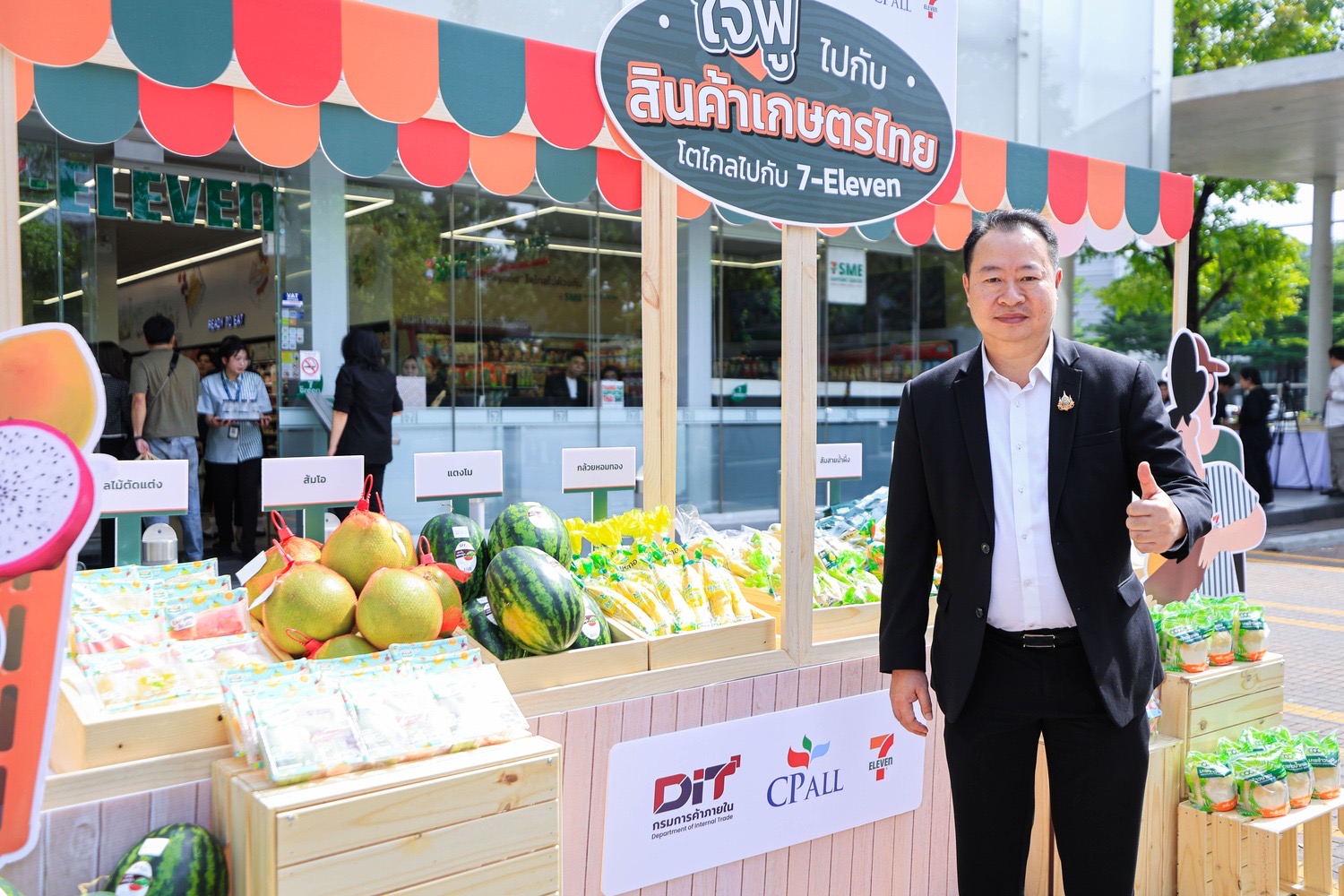 ด้านนายทัพพ์เทพ จีระอดิศวงศ์ รองกรรมการผู้จัดการอาวุโส บริษัท ซีพี ออลล์ จำกัด (มหาชน) กล่าวว่า เซเว่น อีเลฟเว่น เดินหน้านโยบาย “สร้างอาชีพ” ส่งเสริมเกษตรกรและผู้ประกอบการ SME มาอย่างต่อเนื่อง ภายใต้แนวคิด “SME โตไกลไปด้วยกันอย่างยั่งยืน” โดยยึดกลยุทธ์ “3 ให้” คือ ให้ช่องทางจำหน่าย ให้ความรู้ และให้การเชื่อมโยงเครือข่าย เพื่อช่วยให้เกษตรกรและผู้ประกอบการรายย่อยเข้าถึงช่องทางจำหน่ายที่แข็งแกร่ง ซึ่งร้านเซเว่น อีเลฟเว่นทั่วประเทศ รวมถึงช่องทางออนไลน์อย่าง All Online และ 7 Delivery ทำหน้าที่เป็นสะพานเชื่อมระหว่างเกษตรกรกับผู้บริโภค ช่วยสร้างรายได้หมุนเวียนกลับคืนสู่ท้องถิ่น และเป็นพลังสำคัญในการขับเคลื่อนเศรษฐกิจฐานรากให้เติบโตอย่างยั่งยืน