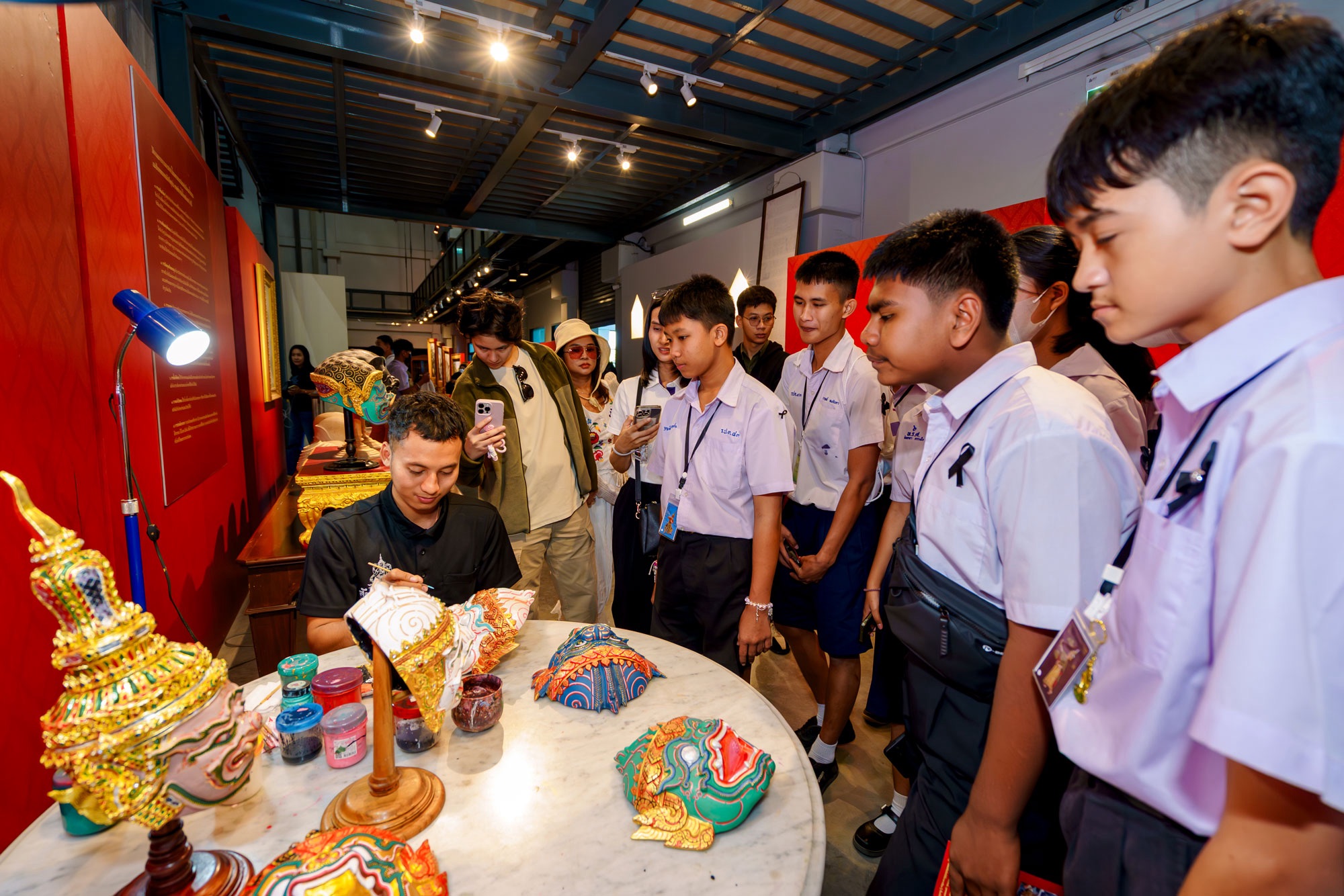 ต่อเนื่องด้วยการเยี่ยมชมพิพิธภัณฑ์ศิลป์แผ่นดิน และอาคารเรียน-รู้-เรื่องโขน ณ ศูนย์ศิลปาชีพเกาะเกิด จังหวัดพระนครศรีอยุธยา ซึ่งจัดตั้งขึ้นตามพระราชดำริของสมเด็จพระนางเจ้าฯ เพื่อเป็นแหล่งอนุรักษ์ ถ่ายทอด และแสดงผลงานของช่างฝีมือไทย เยาวชนได้เห็นขั้นตอนการสร้างหัวโขน เครื่องแต่งกาย และงานศิลป์อันประณีต ที่ต้องอาศัยความวิจิตรบรรจง ความมุ่งมั่น และหัวใจที่รักในศิลปะไทย