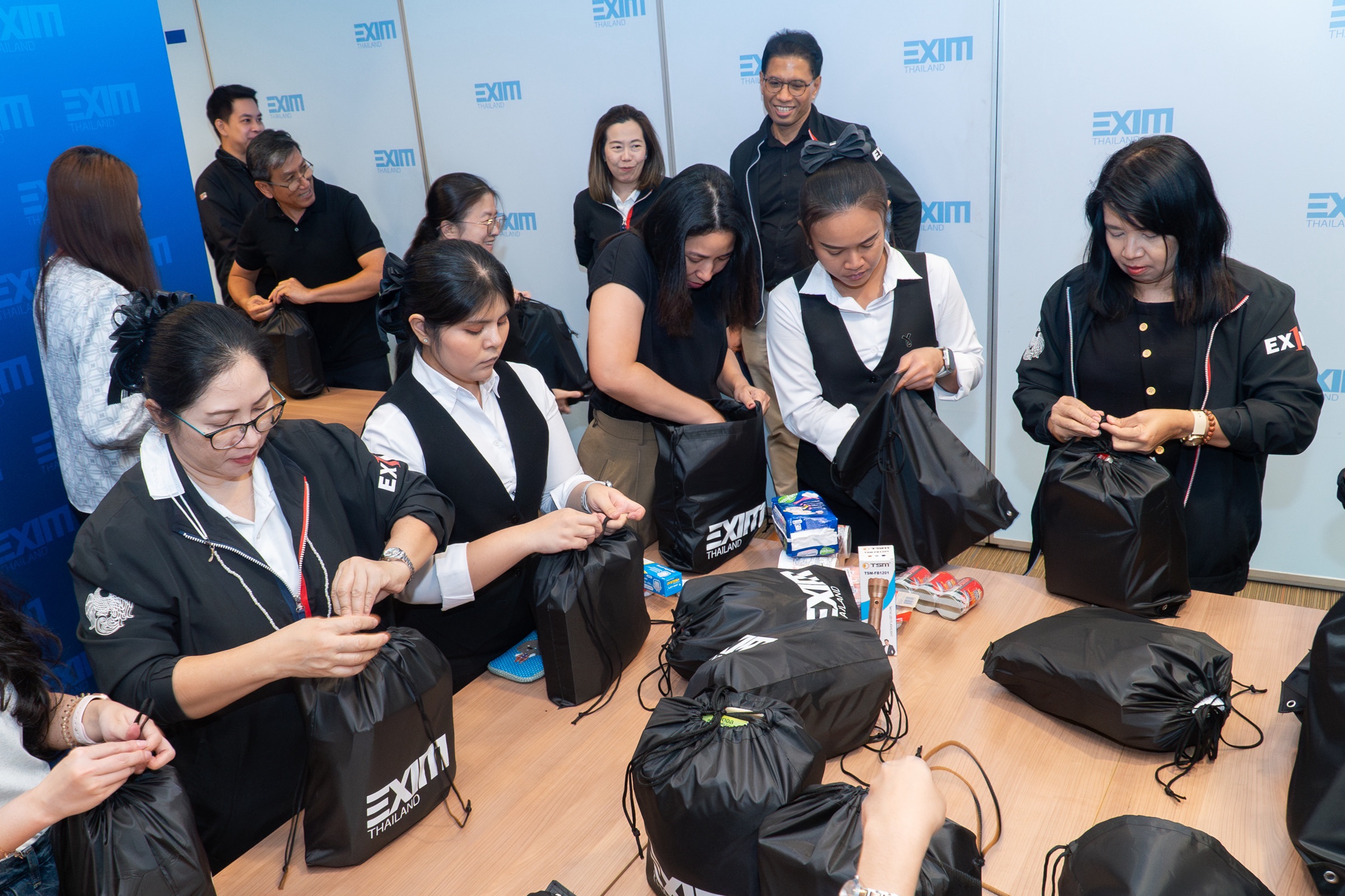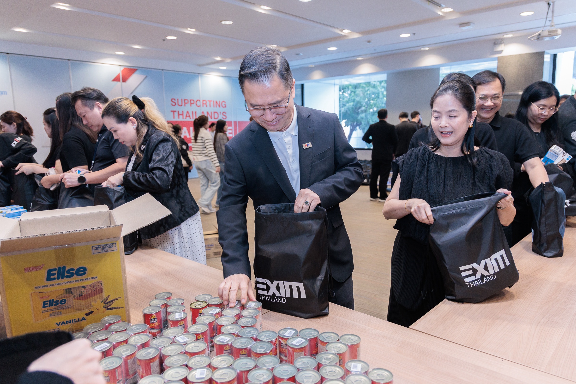 นายชลัช รัตนบุญนิธิ กรรมการผู้จัดการ ธนาคารเพื่อการส่งออกและนำเข้าแห่งประเทศไทย (EXIM BANK) พร้อมด้วยผู้บริหารและพนักงาน ร่วมแรงร่วมใจจัดทำถุงยังชีพจำนวน 500 ชุด ประกอบด้วย อาหารแห้ง อาหารพร้อมทาน ไฟฉาย และของใช้จำเป็นต่อการดำรงชีวิต นอกจากนี้ ผู้บริหารและพนักงานยังร่วมบริจาคสมทบเครื่องอุปโภคบริโภคและของใช้จำเป็นเพิ่มเติม เพื่อส่งมอบความช่วยเหลือและบรรเทาความเดือดร้อนแก่ประชาชนที่ประสบอุทกภัยในภาคใต้ต่อไป ณ EXIM BANK สำนักงานใหญ่ เมื่อวันที่ 27 พฤศจิกายน 2568