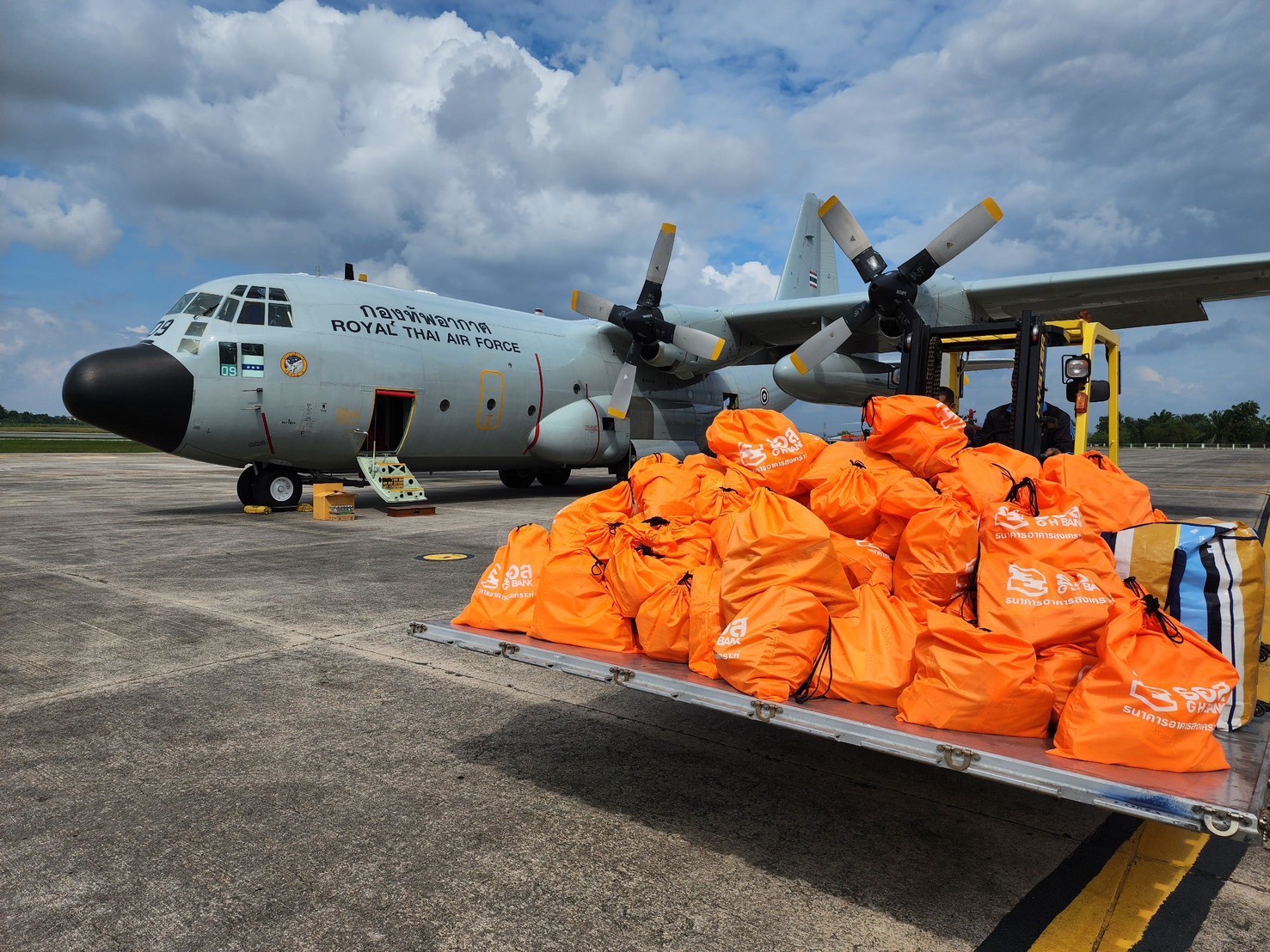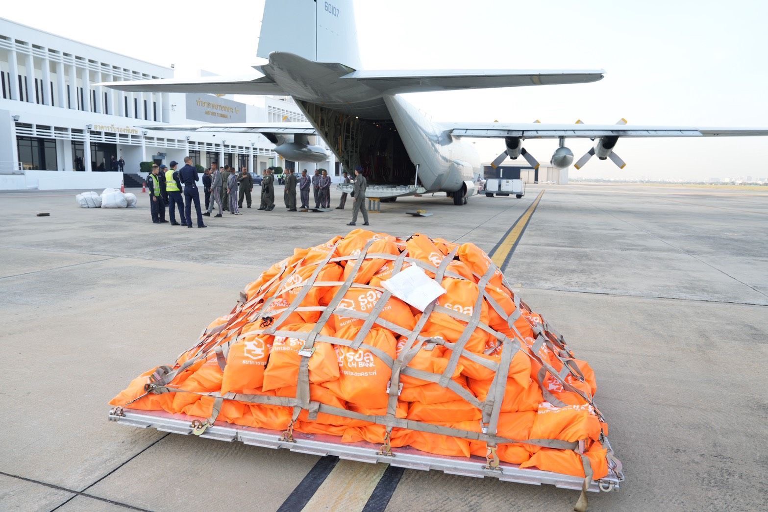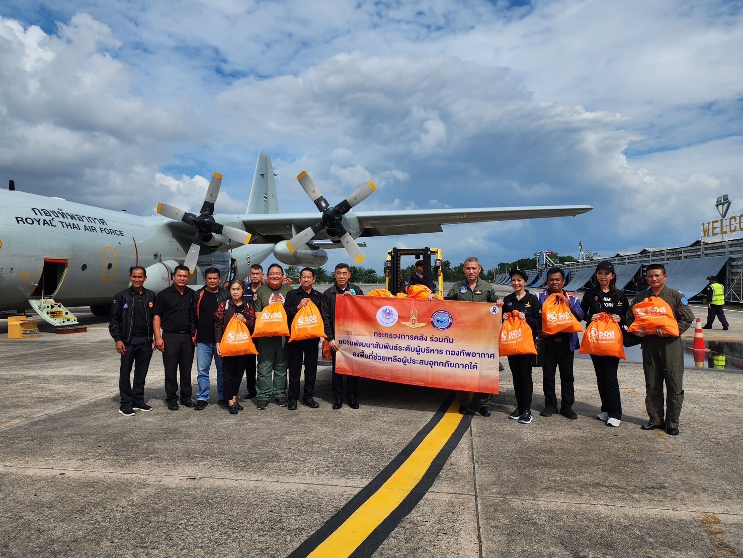 ดร.เอกนิติ นิติทัณฑ์ประภาศ รองนายกรัฐมนตรีและรัฐมนตรีว่าการกระทรวงการคลัง มอบหมายให้นาย อัครุตม์ สนธยานนท์ อธิบดีกรมธนารักษ์ เป็นผู้แทนกระทรวงการคลัง ร่วมกับ ธนาคารอาคารสงเคราะห์ (ธอส.) โดยนายธะเรศ โปษยานนท์ กรรมการธนาคาร นายกมลภพ วีระพละ กรรมการผู้จัดการ และชมรมพัฒนาสัมพันธ์ระดับผู้บริหาร กองทัพอากาศ โดยพลอากาศโทประสิทธิ์ ดำรงปรีชา เจ้ากรมกิจการพลเรือนทหารอากาศ ในฐานะประธานชมรมฯ และนางสาวโกมล เจียรวนนท์ ประธานบริหารชมรมฯ พร้อมคณะ เดินทางโดยเครื่องบิน C-130 ของกองทัพอากาศจากท่าอากาศยานทหาร 2 กองบิน 6 ไปยังกองบิน 56 อำเภอหาดใหญ่ จังหวัดสงขลา เพื่อส่งมอบถุงยังชีพที่บรรจุเครื่องอุปโภคบริโภค และสิ่งของจำเป็น รวมถึงอาหารพร้อมทาน จำนวนกว่า 1,200 ชุด ให้แก่ลูกค้าและประชาชนในพื้นที่อำเภอหาดใหญ่และบริเวณโดยรอบที่ประสบอุทกภัย
