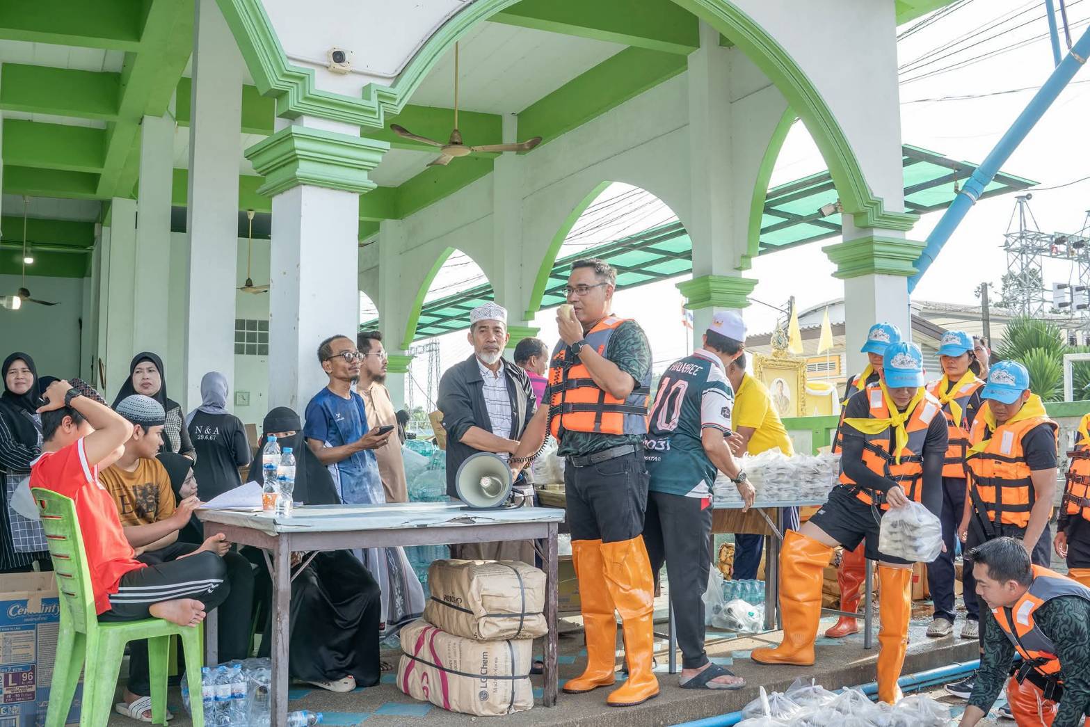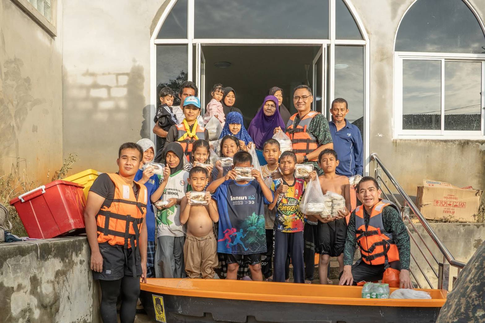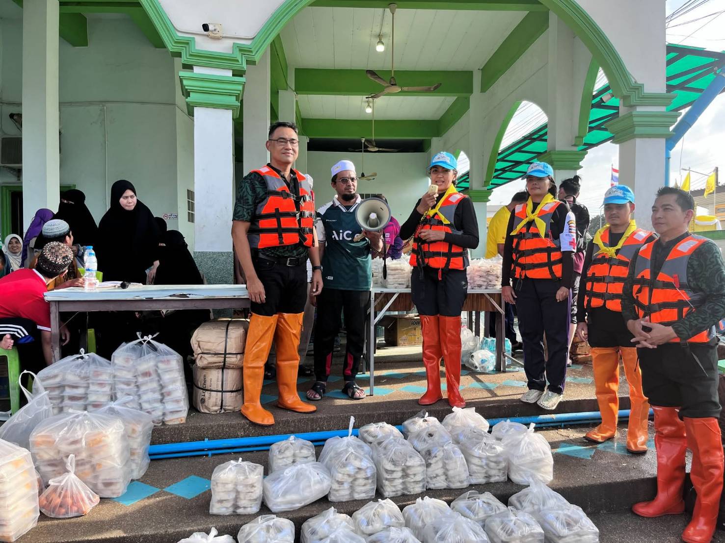 ด้วยความห่วงใยอย่างยิ่งต่อสถานการณ์น้ำท่วมในพื้นที่ภาคใต้ โดย นายธีระ ยีโกบ ผู้ช่วยกรรมการผู้จัดการ ผู้บริหารกลุ่มงานธุรกิจสาขา ลงพื้นที่ปฏิบัติงานอย่างใกล้ชิดให้การสนับสนุนภารกิจ “โรงครัวฮาลาล” เพื่อผลิตอาหารปรุงสุกมอบแก่ผู้ประสบภัย และได้ส่งมอบงบประมาณสนับสนุนให้แก่สภาเครือข่ายช่วยเหลือด้านมนุษยธรรม สำนักจุฬาราชมนตรี ผ่าน ดร.วิสุทธิ์ บิลล่าเต๊ะ อิหม่ามมัสยิดบ้านเหนือ และ นายอิสมาแอล หมัดอาด้ำ รองประธานสภาเครือข่ายช่วยเหลือด้านมนุษยธรรม สำนักจุฬาราชมนตรี ซึ่งสะท้อนถึงความร่วมแรงร่วมใจของเครือข่ายในพื้นที่ท่ามกลางสถานการณ์ที่ท้าทาย พร้อมกันนี้ ได้นำทีมลงพื้นที่ชุมชนมัสยิดซูลูฮุดดีน (บ้านบางแฟบ) ที่ ต.ควนลัง จ.สงขลา แจกอาหารฮาลาลปรุงสุก น้ำดื่ม และยารักษาโรค พร้อมด้วย พ.ต.ท.หญิง ดวงเดือน ขุนทอง สารวัตรกองกำกับการตำรวจตระเวนชายแดนที่ 43 และด้วยความร่วมมือจาก นายฮาวารี หมัดอะหิน อิหม่าม และ นายมะหมูด หมัดอะหิน กรรมการบริหารมัสยิดนูรุดดีน (โรงไฟฟ้า) อ.หาดใหญ่ นำอาหารไปมอบแก่พี่น้องประชาชน จำนวน 300 ชุด โดยมี นายชาดา ไทยเศรษฐ์ และ พันตำรวจเอก ทวี สอดส่อง มาร่วมให้กำลังใจทีมงานและประชาชนผู้ประสบอุทกภัย ทั้งนี้ เพื่อต้องการให้เห็นถึงความตั้งใจและการมาร่วมเป็นกำลังใจจากพวกเราชาวไอแบงก์กับหน่วยงานสำคัญในพื้นที่ในครั้งนี้