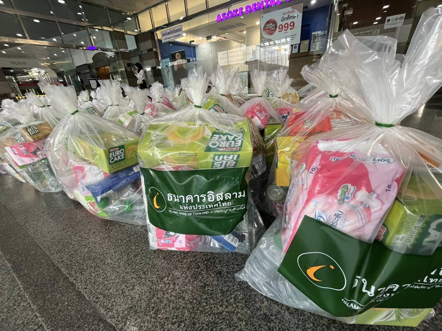 นอกจากนี้ ไอแบงก์ยังให้ความสำคัญต่อปากท้องของพี่น้องผู้ประสบภัยโดยเร่งจัดทำถุงยังชีพฮาลาล โดย นางนุจรี ภักดีเจริญ ผู้ช่วยกรรมการผู้จัดการ ผู้บริหารกลุ่มงานธุรกิจรายย่อย ได้นำทีมพนักงานจิตอาสาบรรจุสิ่งของจำเป็นต่อการดำรงชีวิต ซึ่งในส่วนของอาหารที่บรรจุในถุงยังชีพเป็นอาหารฮาลาล เพื่อให้พี่น้องมุสลิมสามารถรับประทานได้ และประชาชนทั่วไปก็รับประทานได้เช่นกัน สะท้อนถึงความตั้งใจของธนาคารในการคำนึงถึงความเหมาะสมและความหลากหลายของผู้รับความช่วยเหลือ โดยส่งมอบน้ำดื่มและถุงยังชีพฮาลาลให้ศูนย์อำนวยการช่วยเหลือเครือข่ายวายุภักษ์ ของกระทรวงการคลัง ซึ่งได้รับเกียรติจาก นางสาวอมรรัตน์ จารุรัตน์ ผู้ช่วยปลัดกระทรวงการคลัง เป็นผู้รับมอบ ในวันที่ 28 พฤศจิกายน 2568 เพื่อนำไปกระจายสู่ประชาชนในพื้นที่ประสบภัยอย่างเร่งด่วน ผ่านกลไกความร่วมมือของเครือข่ายวายุภักษ์