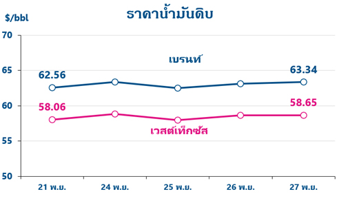 สรุปสถานการณ์ราคาน้ำมันในสัปดาห์ที่ผ่านมา (21 – 27 พ.ย. 68)