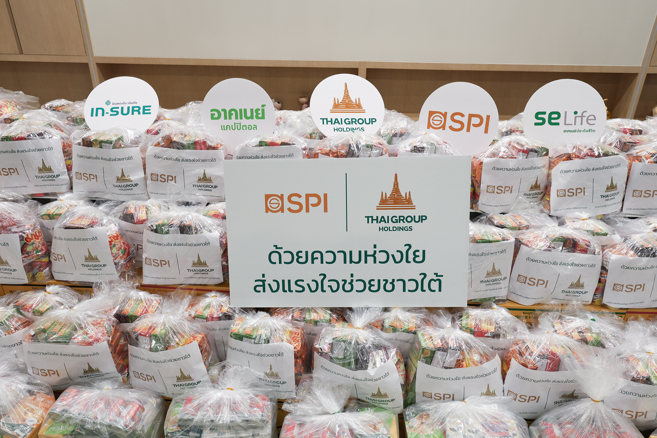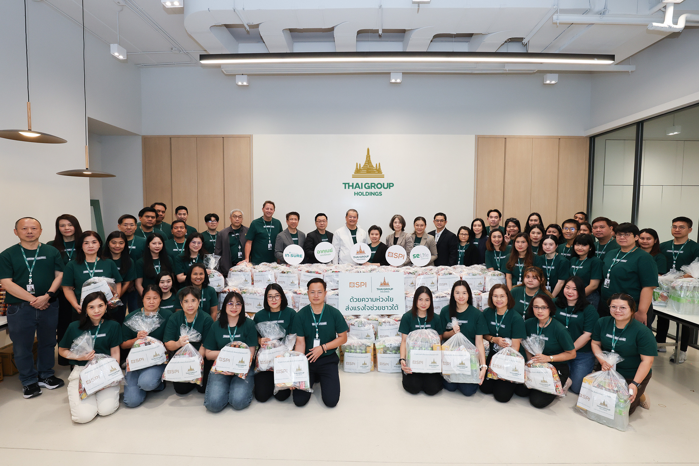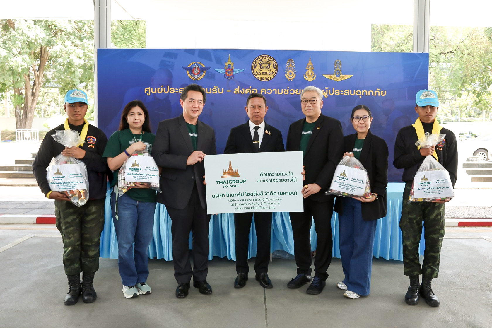 เมื่อวันที่ 28 พฤศจิกายน 2568 คณะผู้บริหาร บริษัท ไทยกรุ๊ป โฮลดิ้งส์ จำกัด (มหาชน) กลุ่มธุรกิจประกันและการเงินในเครือทีซีซี นำโดย นายโชติพัฒน์ และนางอาทินันท์ พีชานนท์ ประธานและรองประธานกรรมการบริหาร พร้อมด้วยนางสาวธนินธร โชควัฒนา ผู้อำนวยการสำนักสื่อสารองค์กรและธรรมาภิบาล บริษัท สหพัฒนาอินเตอร์โฮลดิ้ง จำกัด (มหาชน) และผู้บริหารไทยกรุ๊ป พนักงานจิตอาสา ได้ร่วมแรงร่วมใจกันบรรจุถุงยังชีพเพื่อเตรียมส่งมอบสู่พื้นที่ประสบภัยผ่านศูนย์บรรเทาสาธารณภัยกองทัพอากาศ โดยมี พลโท อดุลย์ บุญธรรมเจริญ รัฐมนตรีช่วยว่าการกระทรวงกลาโหม เป็นผู้รับมอบ เพื่อนำไปกระจายความช่วยเหลือสู่พี่น้องชาวใต้ต่อไป